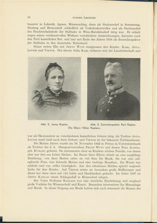 Abb. 3. Zentralinspekfor Karl Kaplan. Die Eltern Viktor Kaplans.