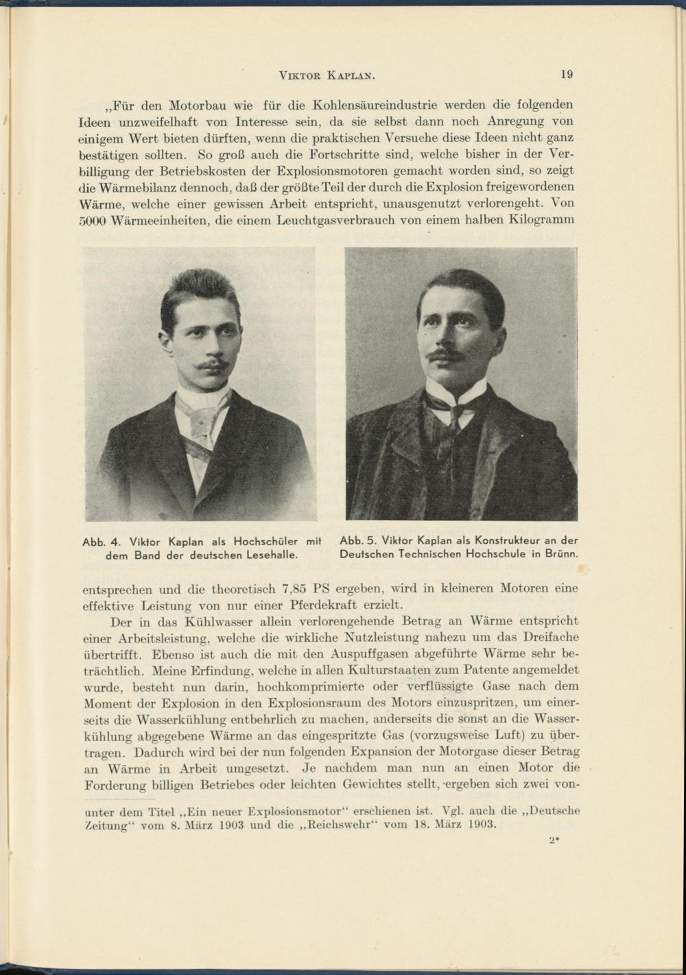 Abb. 4. Viktor Kaplan als Hochschüler mit Abb. 5. Viktor Kaplan als Konstrukteur an der dem Band der deutschen Lesehalle. Deutschen Technischen Hochschule in Brünn.