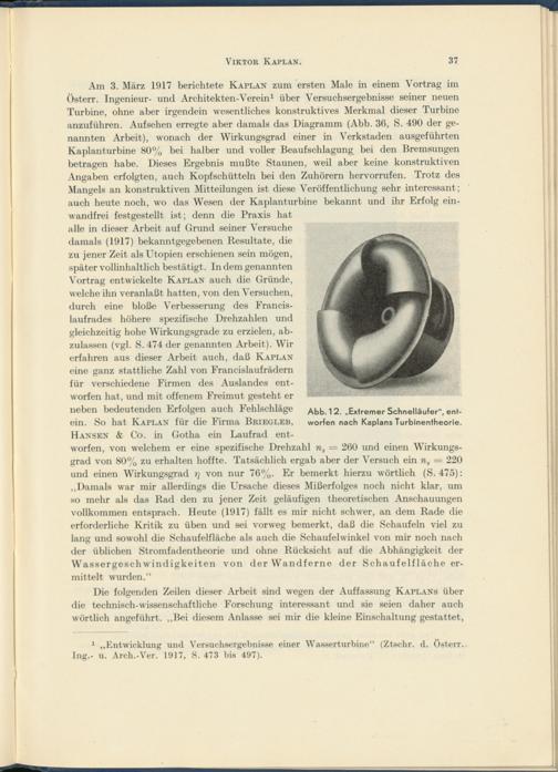 Die folgenden Zeilen dieser Arbeit sind wegen der Auffassung Kaplans über die technisch-wissenschaftliche Forschung interessant und sie seien daher auch wörtlich angeführt. „Bei diesem Anlasse sei mir die kleine Einschaltung gestattet,