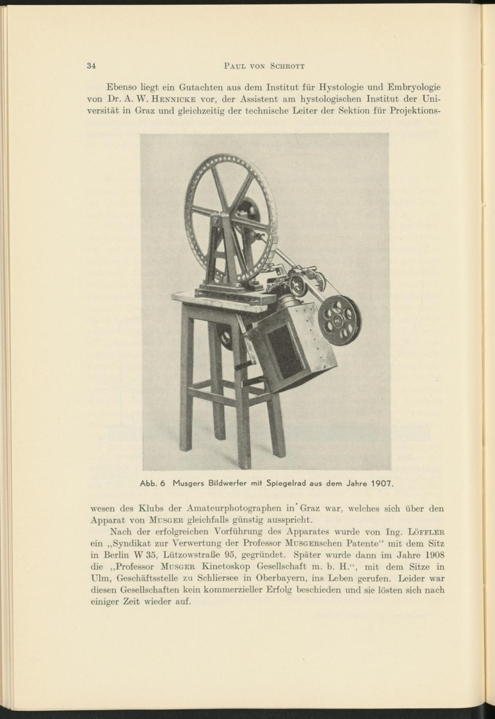 Ebenso liegt ein Gutachten aus dem Institut für Hystologie und Embryologie von Dr. A. W. Hennicke vor, der Assistent am hystologischen Institut der Universität in Graz und gleichzeitig der technische Leiter der Sektion für Projektions-