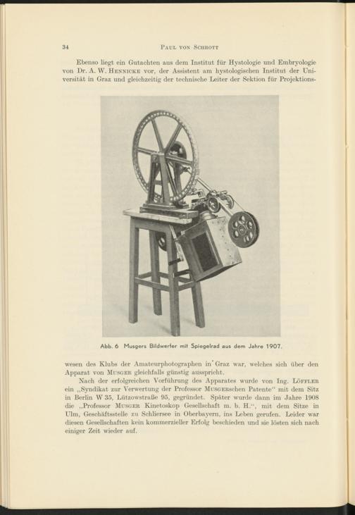 Abb. 6 Musgers Bildwerfer mit Spiegelrad aus dem Jahre 1907.