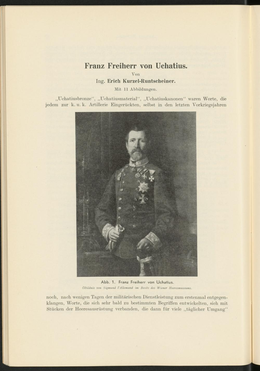 „Uchatiusbronze“, „Uchatiusmaterial“, „Uchatiuskanonen“ waren Worte, die jedem zur k. u. k. Artillerie Eingerückten, selbst in den letzten Vorkriegsjahren