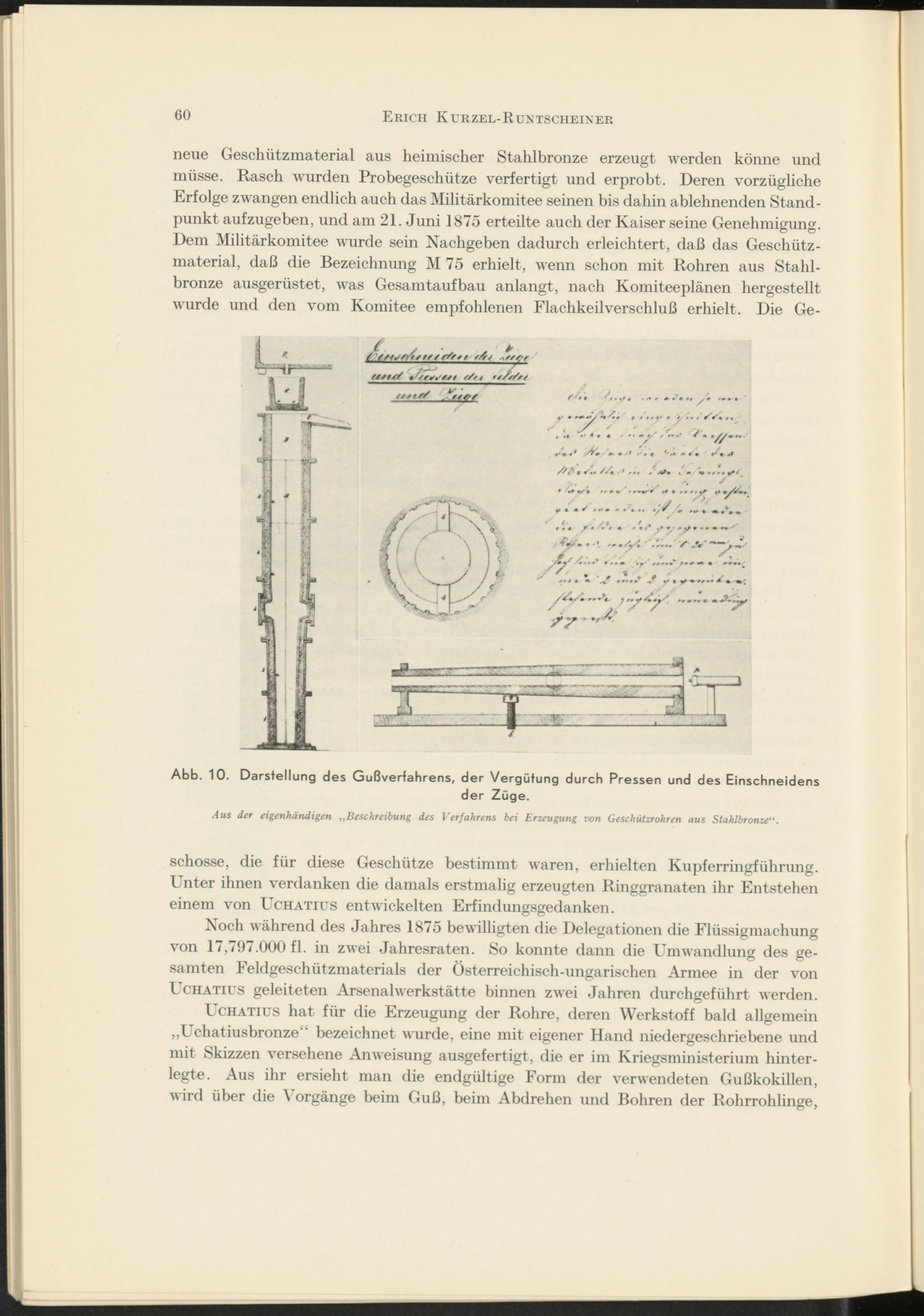 schosse, die für diese Geschütze bestimmt waren, erhielten Kupferringführung. Unter ihnen verdanken die damals erstmalig erzeugten Ringgranaten ihr Entstehen einem von Uchatius entwickelten Erfindungsgedanken.