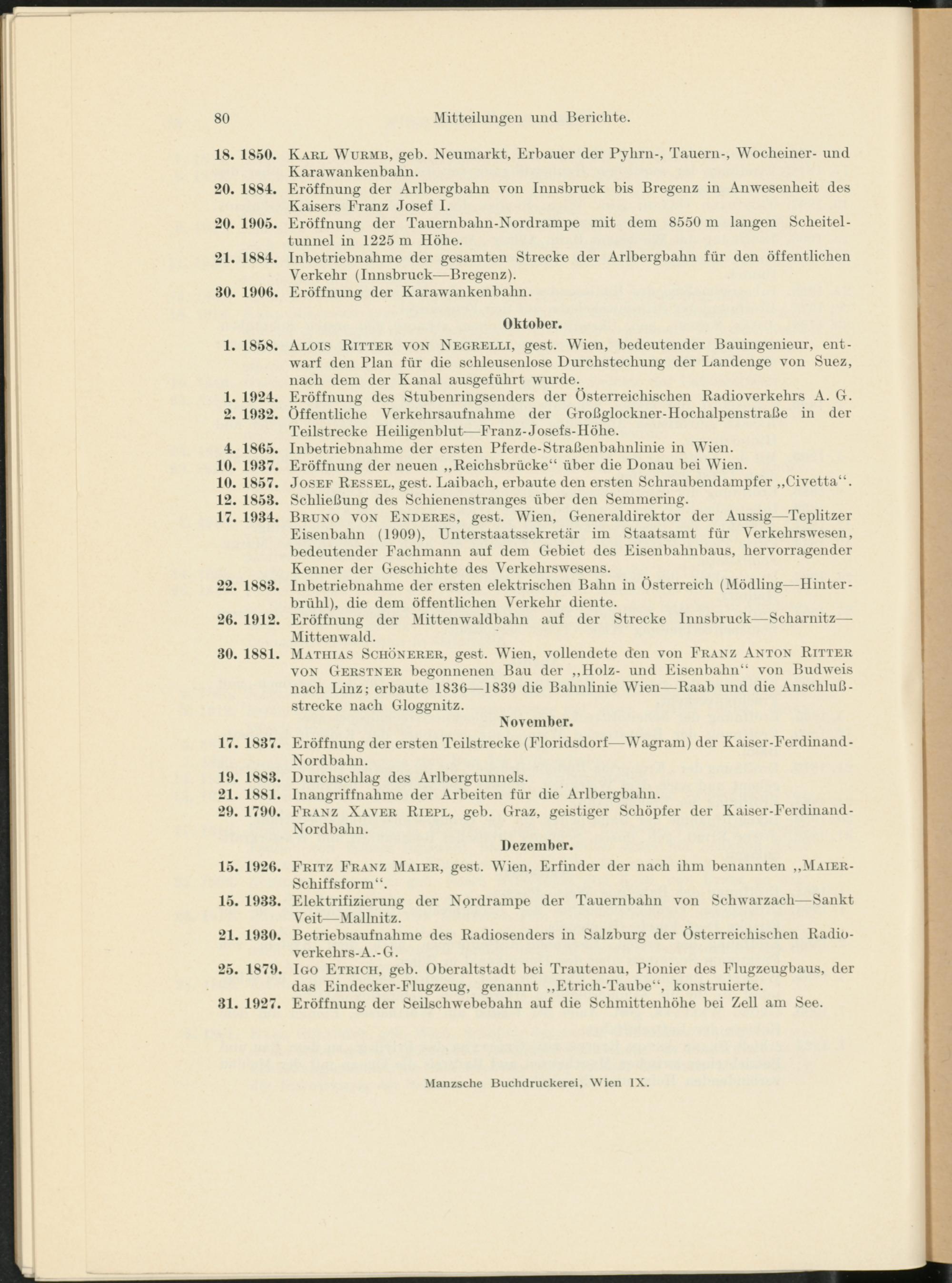 Inbetriebnahme der ersten elektrischen Bahn in Österreich (Mödling—Hinter- briilil), die dem öffentlichen Verkehr diente.