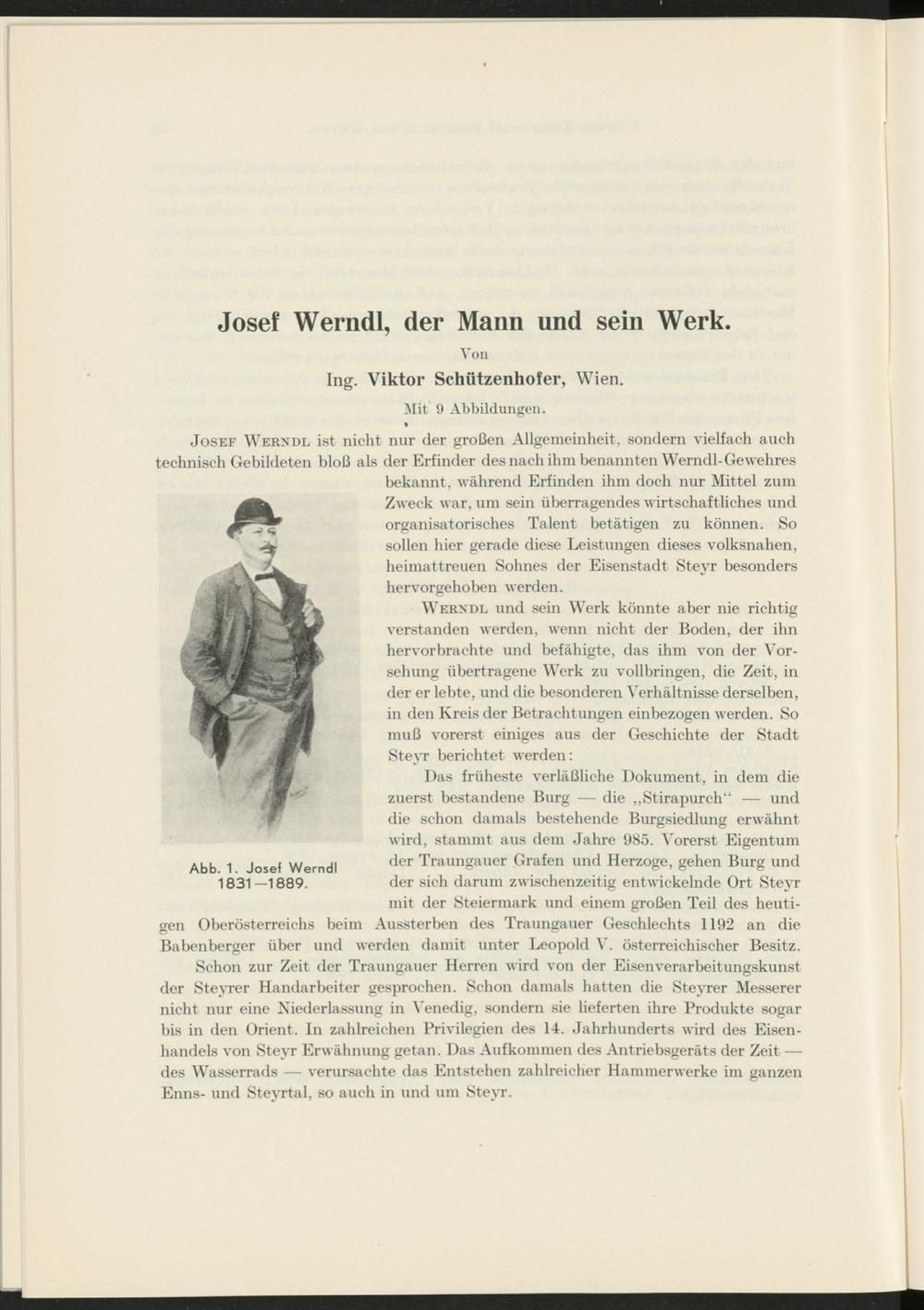 Werndl und sein Werk könnte aber nie richtig verstanden werden, wenn nicht der Boden, der ihn hervorbrachte und befähigte, das ihm von der Vorsehung übertragene Werk zu vollbringen, die Zeit, in der er lebte, und die besonderen Verhältnisse derselben, in den Kreis der Betrachtungen einbezogen werden. So muß vorerst einiges aus der Geschichte der Stadt Steyr berichtet werden: