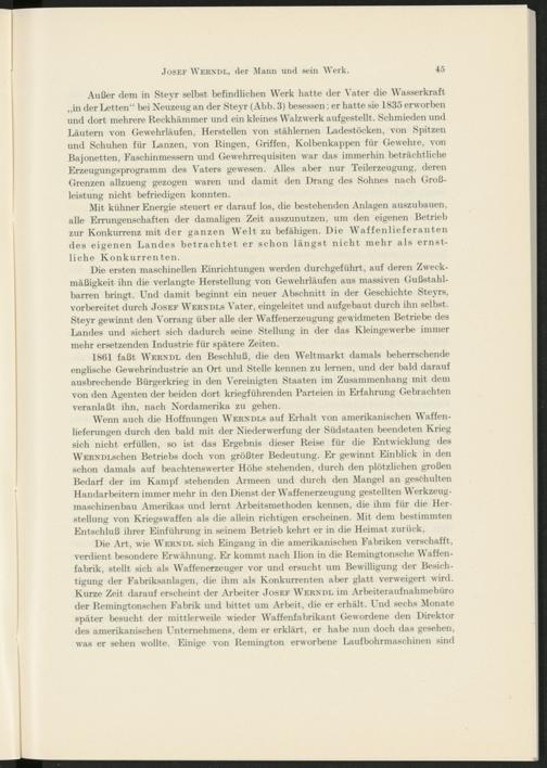 Außer dem in Steyr selbst befindlichen Werk hatte der Vater die Wasserkraft „in der Letten“ bei Neuzeug an der Steyr (Abb. 3) besessen; er hatte sie 1835 erworben und dort mehrere Reckhämmer und ein kleines Walzwerk aufgestellt. Schmieden und Läutern von Gewehrläufen, Herstellen von stählernen Ladestöcken, von Spitzen und Schuhen für Lanzen, von Ringen, Griffen, Kolbenkappen für Gewehre, von Bajonetten, Faschinmessern und Gewehrrequisiten war das immerhin beträchtliche Erzeugungsprogramm des Vaters gewesen. Alles aber nur Teilerzeugung, deren Grenzen allzueng gezogen waren und damit den Drang des Sohnes nach Großleistung nicht befriedigen konnten.