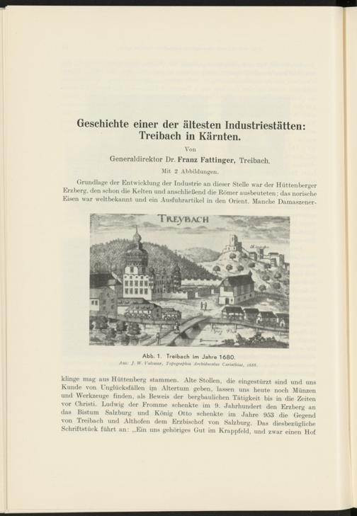 klinge mag aus Hüttenberg stammen. Alte Stollen, die eingestürzt sind und uns Kunde von Unglücksfällen ipi Altertum geben, lassen uns heute noch Münzen und Werkzeuge finden, als Beweis der bergbaulichen Tätigkeit bis in die Zeiten vor Christi. Ludwig der Fromme schenkte im 9. Jahrhundert den Erzberg an das Bistum Salzburg und König Otto schenkte im Jahre 953 die Gegend von Treibach und Althofen dem Erzbischof von Salzburg. Das diesbezügliche Schriftstück führt an: ,,Ein uns gehöriges Gut im Krappfeld, und zwar einen Hof