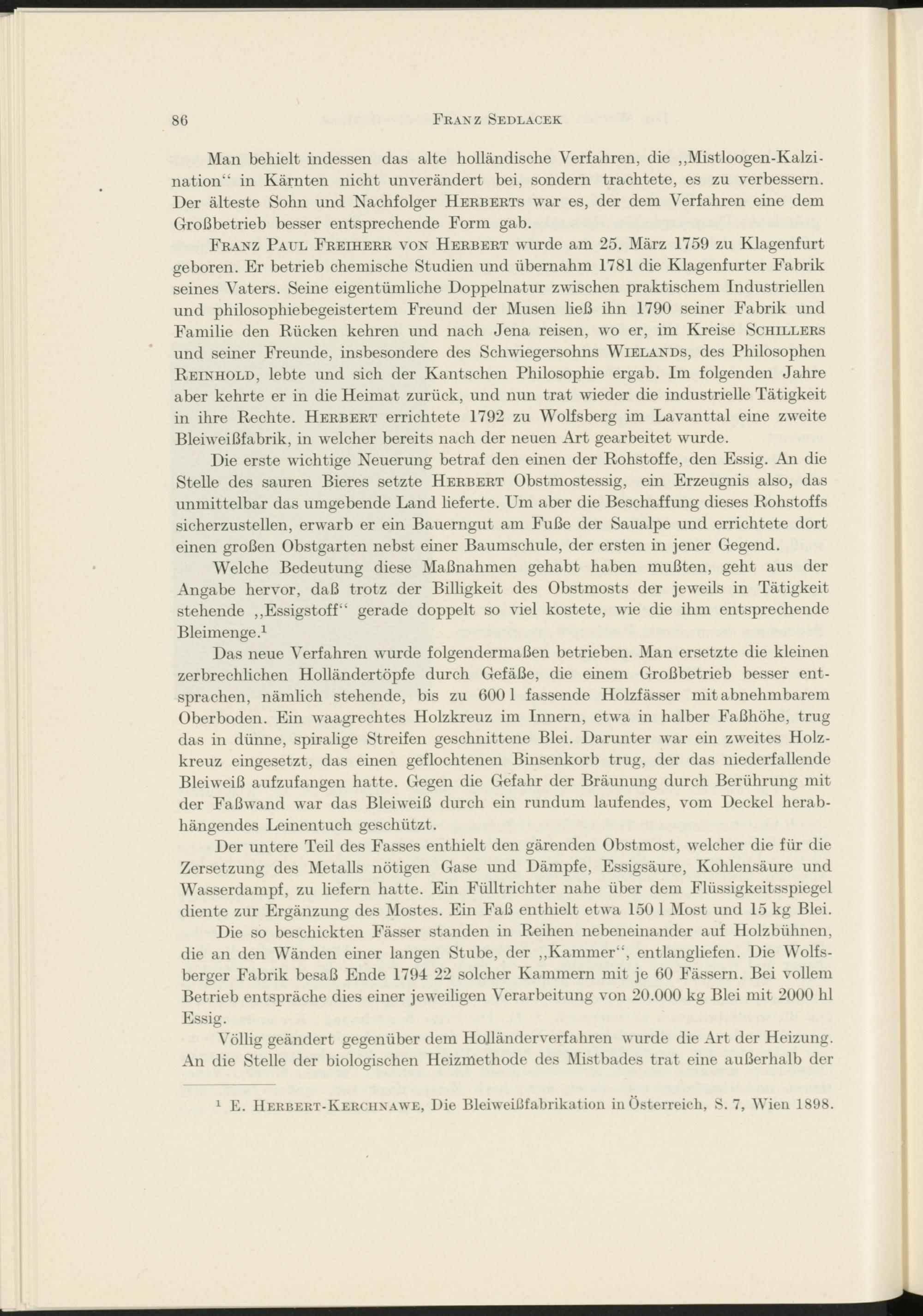 1 E. IIerbert-Kerciixawe, Die Bleiweißfabrikation in Österreich, 8. 7, Wien 1898.