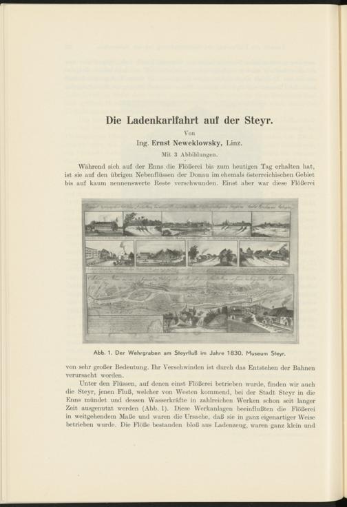 Unter den Flüssen, auf denen einst Flößerei betrieben wurde, finden wir auch die Steyr, jenen Fluß, welcher von Westen kommend, bei der Stadt Steyr in die Enns mündet und dessen Wasserkräfte in zahlreichen Werken schon seit langer Zeit ausgenutzt werden (Abb. 1). Diese Werkanlagen beeinflußten die Flößerei in weitgehendem Maße und waren die Ursache, daß sie in ganz eigenartiger Weise betrieben wurde. Die Flöße bestanden bloß aus Ladenzeug, waren ganz klein und