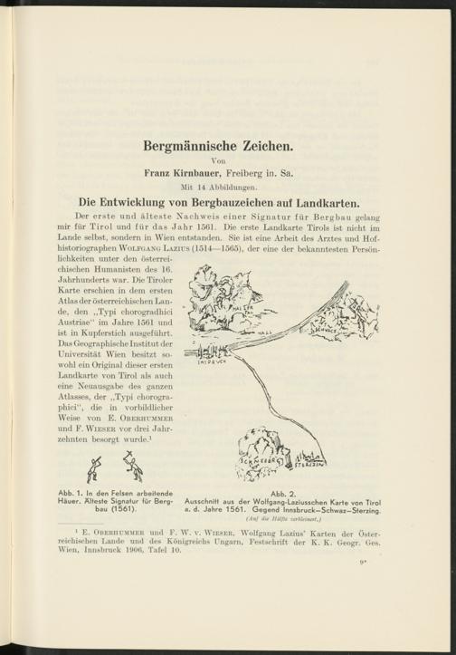 Der erste und älteste Nachweis einer Signatur für Bergbau gelang mir für Tirol und für das Jahr 1561. Die erste Landkarte Tirols ist nicht im Lande selbst, sondern in Wien entstanden. Sie ist eine Arbeit des Arztes und Hofhistoriographen Wolfgang Lazius (1514—1565), der eine der bekanntesten Persönlichkeiten unter den österreichischen Humanisten des 16.