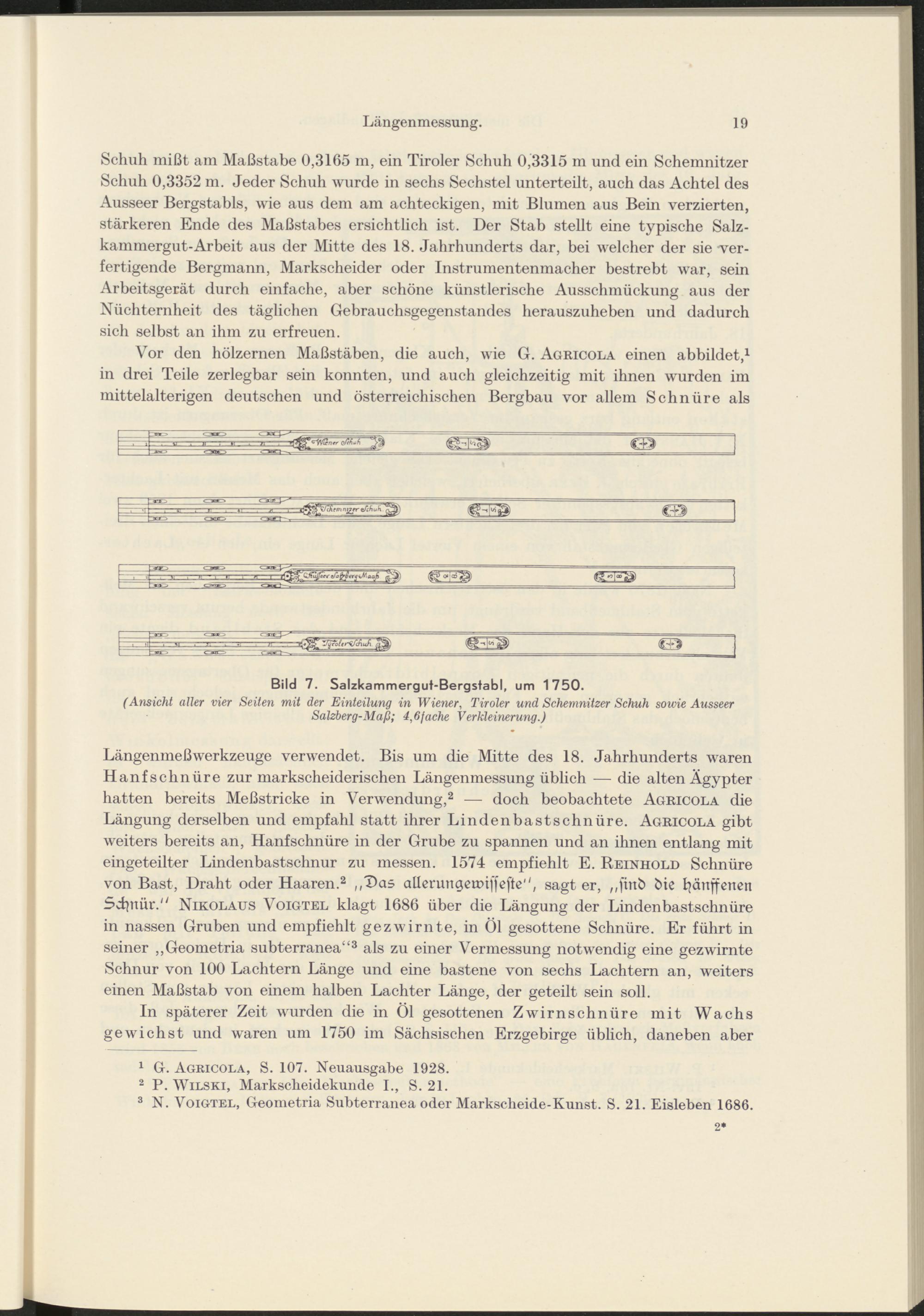 Vor den hölzernen Maßstäben, die auch, wie G. Agricola einen abbildet, 1 in drei Teile zerlegbar sein konnten, und auch gleichzeitig mit ihnen wurden im mittelalterigen deutschen und österreichischen Bergbau vor allem Schnüre als