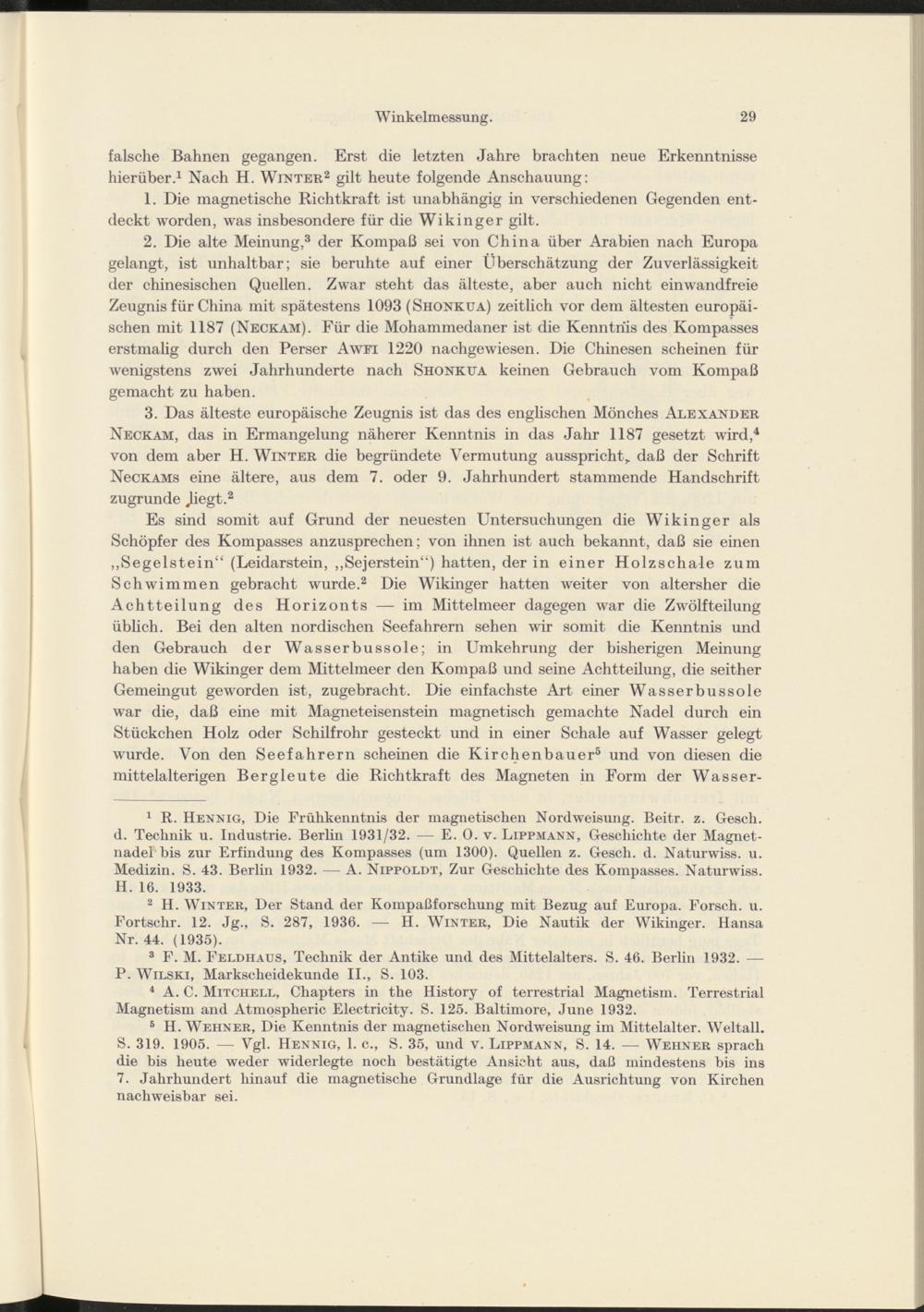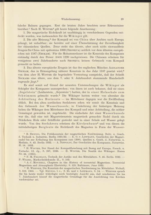 2 H. Winter, Der Stand der Kompaßforschung mit Bezug auf Europa. Forsch, u. Fortschr. 12. Jg., S. 287, 1936. — H. Winter, Die Nautik der Wikinger. Hansa Nr. 44. (1935).