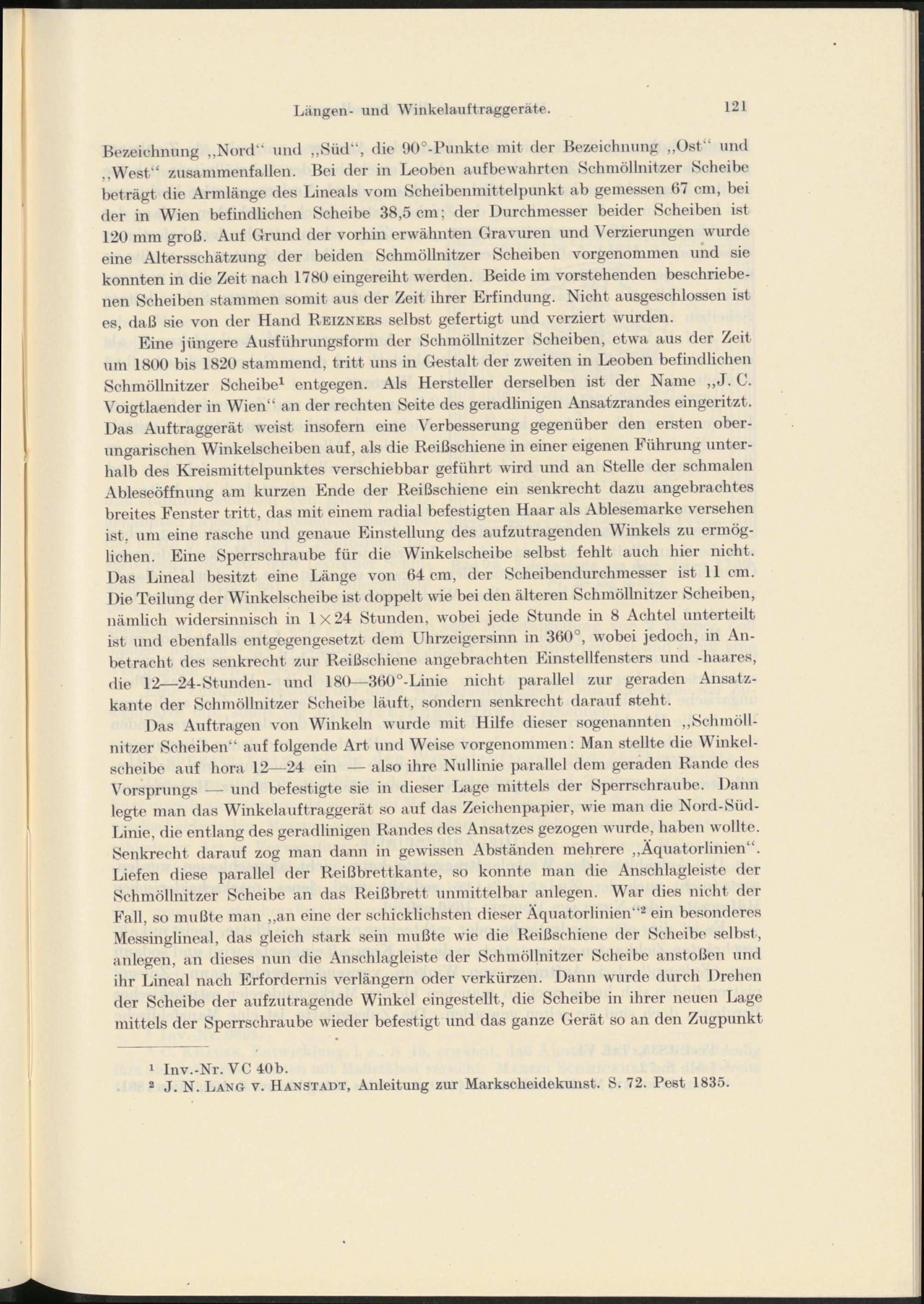 2 J. N. Lang v. Hanstadt, Anleitung zur Markscheidekunst. S. 72. Pest 1835.