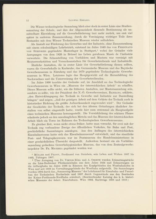 Zu gleicher Zeit, wenn nicht etwas früher, hatte man versucht, für zwei mit der Technik eng verbundene Zweige des öffentlichen Verkehrs, für Bahn und Post, geschichtliche Sammlungen anzulegen. Aus den Anfängen des österreichischen Eisenbahnwesens hatte sich das Eisenbahnmuseum 2 entwickelt, und das staatliche Post- und Telegraphen wesen war im Postmuseum des Handelsministeriums in einer geschichtlichen Übersicht dargestellt. Außerdem bestand ein als Vorbildersammlung gedachtes Gewerbehygienisches Museum, das von dem Zentralgewerbeinspektor Dr. Fr. Migerka gegründet worden war.