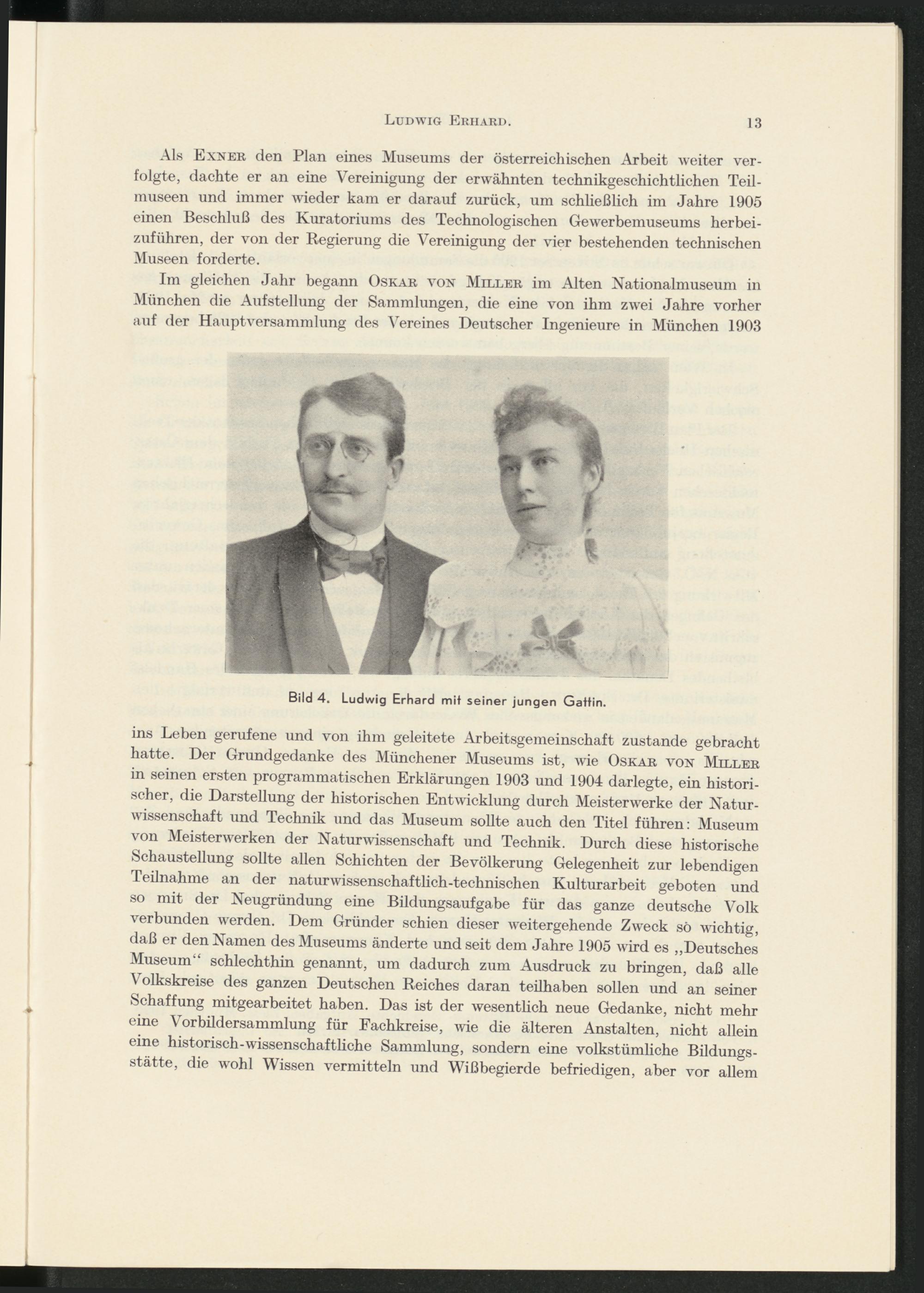 ins Leben gerufene und von ihm geleitete Arbeitsgemeinschaft zustande gebracht hatte. Der Grundgedanke des Münchener Museums ist, wie Oskar von Miller in seinen ersten programmatischen Erklärungen 1903 und 1904 darlegte, ein historischer, die Darstellung der historischen Entwicklung durch Meisterwerke der Naturwissenschaft und Technik und das Museum sollte auch den Titel führen: Museum von Meisterwerken der Naturwissenschaft und Technik. Durch diese historische Schaustellung sollte allen Schichten der Bevölkerung Gelegenheit zur lebendigen Teilnahme an der naturwissenschaftlich-technischen Kulturarbeit geboten und so mit der Neugründung eine Bildungsaufgabe für das ganze deutsche Volk verbunden werden. Dem Gründer schien dieser weitergehende Zweck sö wichtig, daß er den Namen des Museums änderte und seit dem Jahre 1905 wird es „Deutsches Museum“ schlechthin genannt, um dadurch zum Ausdruck zu bringen, daß alle Volkskreise des ganzen Deutschen Reiches daran teilhaben sollen und an seiner Schaffung mitgearbeitet haben. Das ist der wesentlich neue Gedanke, nicht mehr eine Vorbildersammlung für Fachkreise, wie die älteren Anstalten, nicht allein eine historisch-wissenschaftliche Sammlung, sondern eine volkstümliche Bildungsstätte, die wohl Wissen vermitteln und Wißbegierde befriedigen, aber vor allem