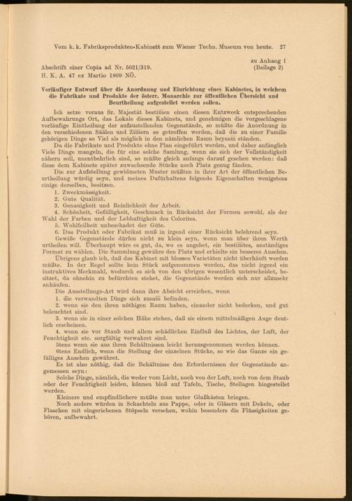 Vom k. k. Fabriksprodukten-Kabinett zum Wiener Techn. Museum von heute. 27