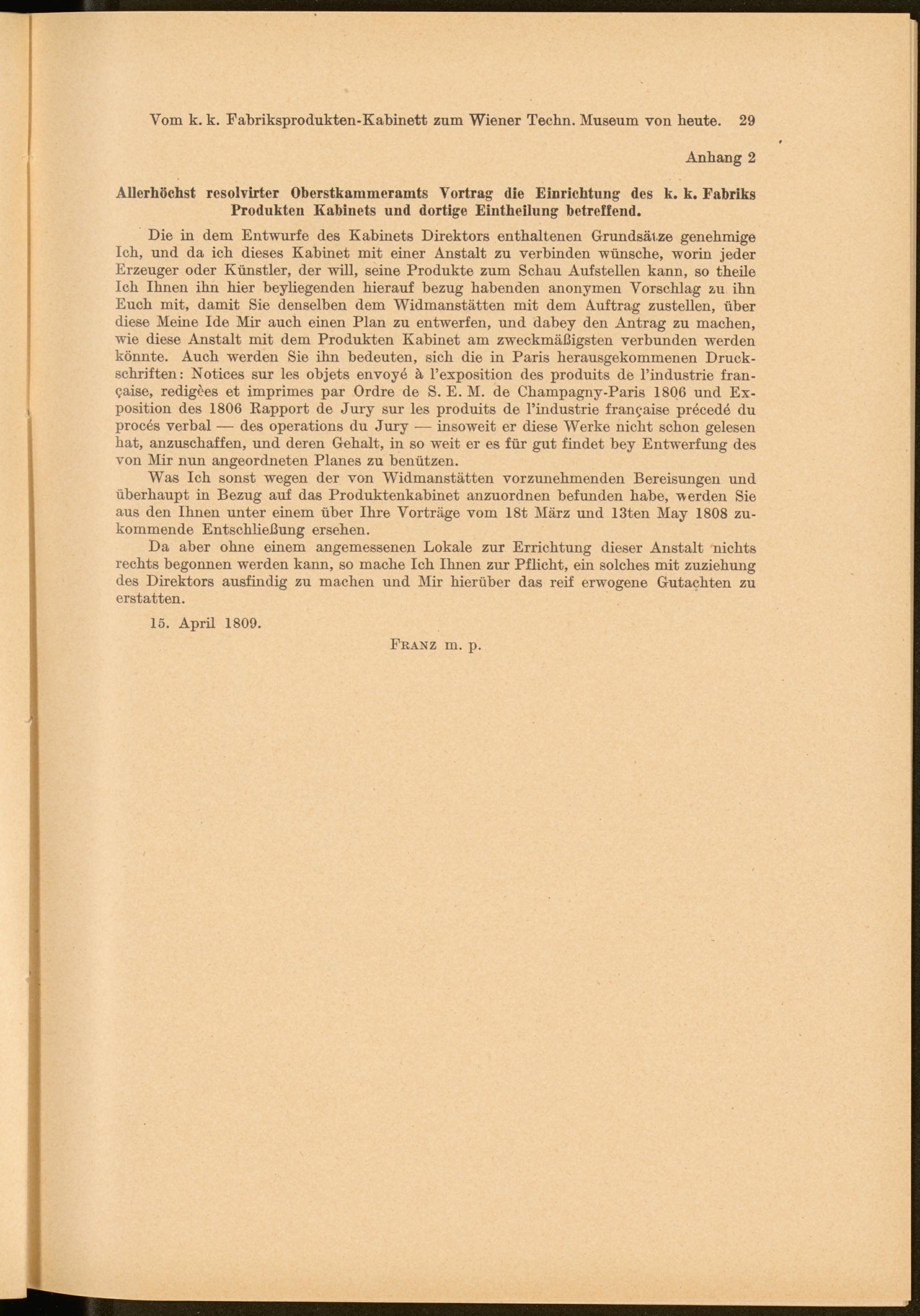 Vom k. k. Fabriksprodukten-Kabinett zum Wiener Tecbn. Museum von heute. 29