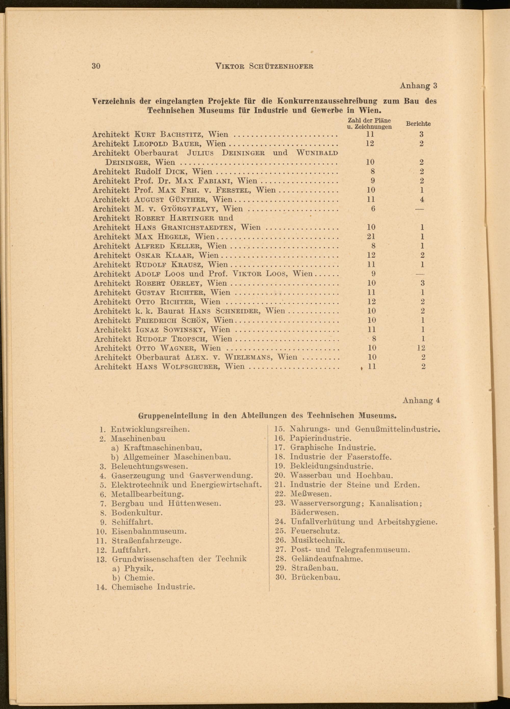 Verzeichnis der eingelangten Projekte für die Konkurrenzausschreibung zum Bau des Technischen Museums für Industrie und Gewerbe in Wien.