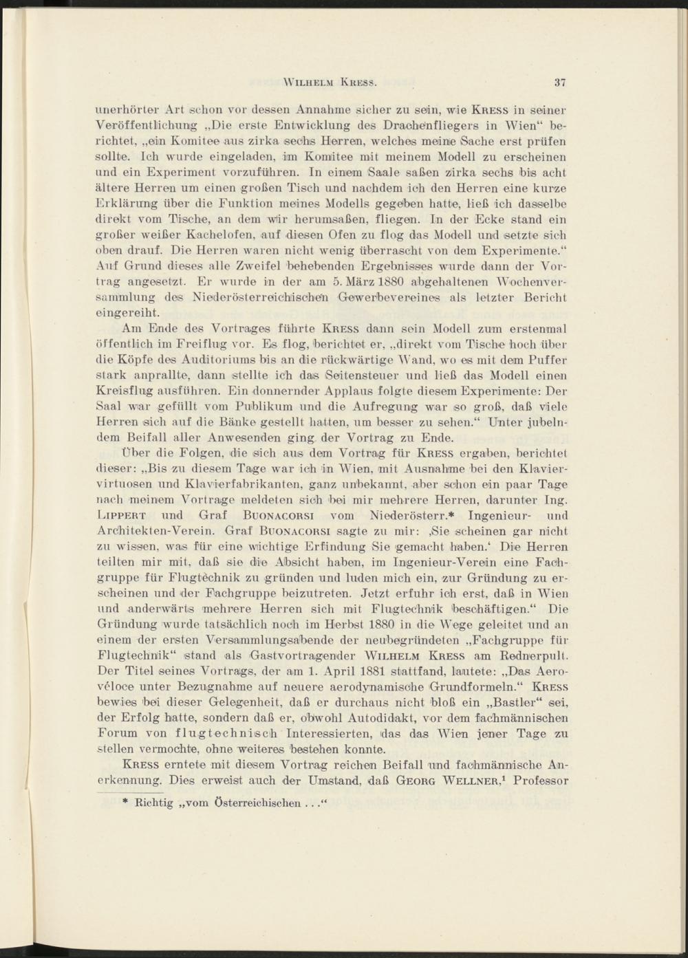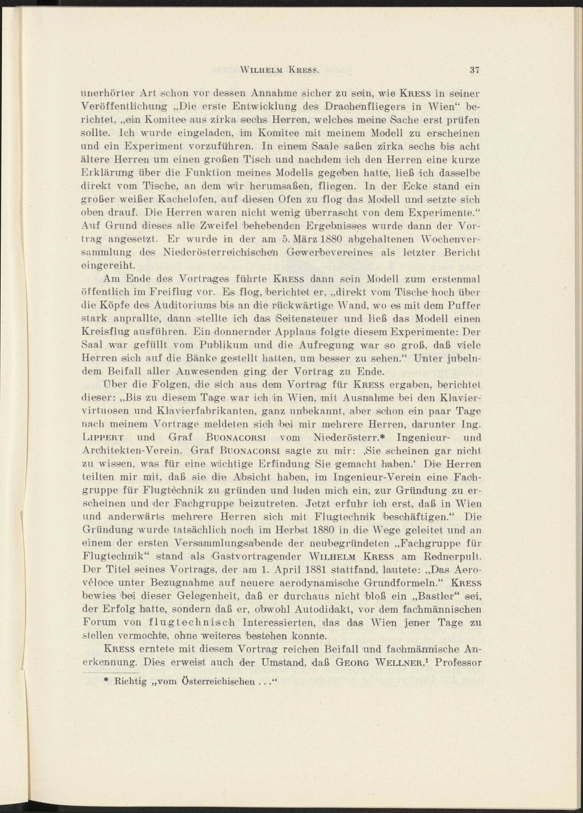 Kress erntete mit diesem Vortrag reichen Beifall und fachmännische Anerkennung. Dies erweist auch der Umstand, daß Georg Wellner , 1 Professor