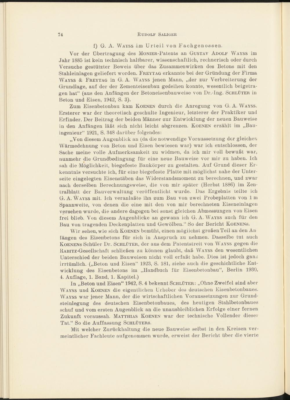 f) G. A. Wayss im Urteil von Fachgenossen.