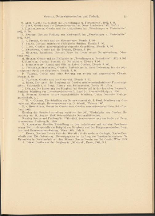 F. Kirnbauer, Goethes Einstellung zu den technischen und sozialen Problemen seiner Zeit. — dar ge stellt am Beispiel des Bergbaus und des Bergmannsstandes. Bergbau- und Bohrtechniker-Zeitung. Wien 1949, Heft 8.