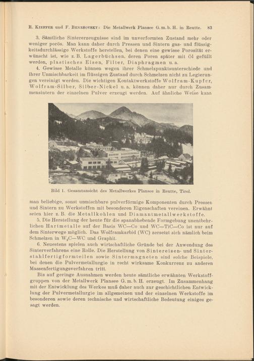 R. Kjeffer und F. BeneSovsky: Die Metallwerk Plansee G.m.b. H. in Reutte. 83