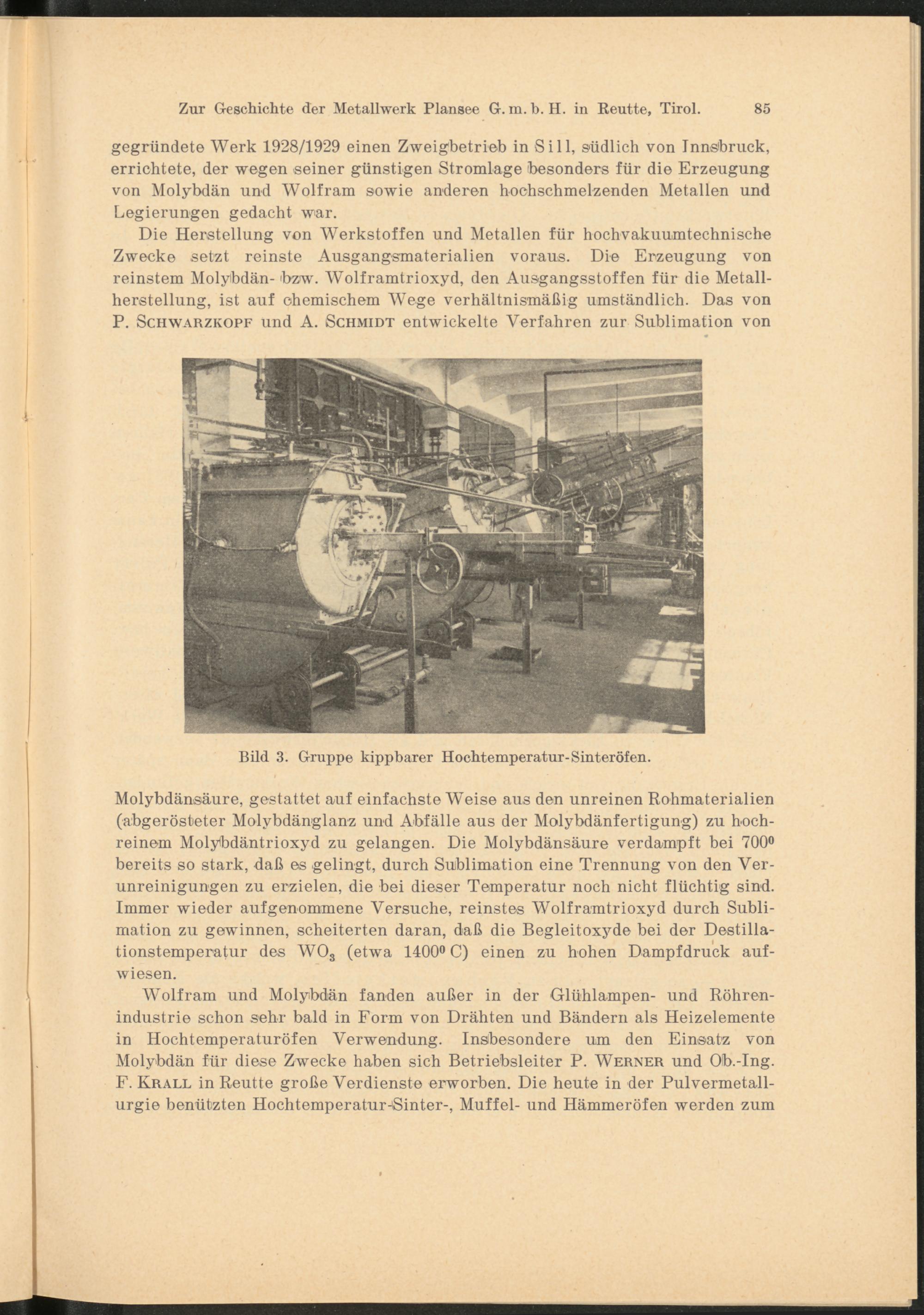 gegründete Werk 1928/1929 einen Zweigbetrieb in Sill, südlich von Innsbruck, errichtete, der wegen seiner günstigen Stromlage besonders für die Erzeugung von Molybdän und Wolfram sowie anderen hochschmelzenden Metallen und Legierungen gedacht war.
