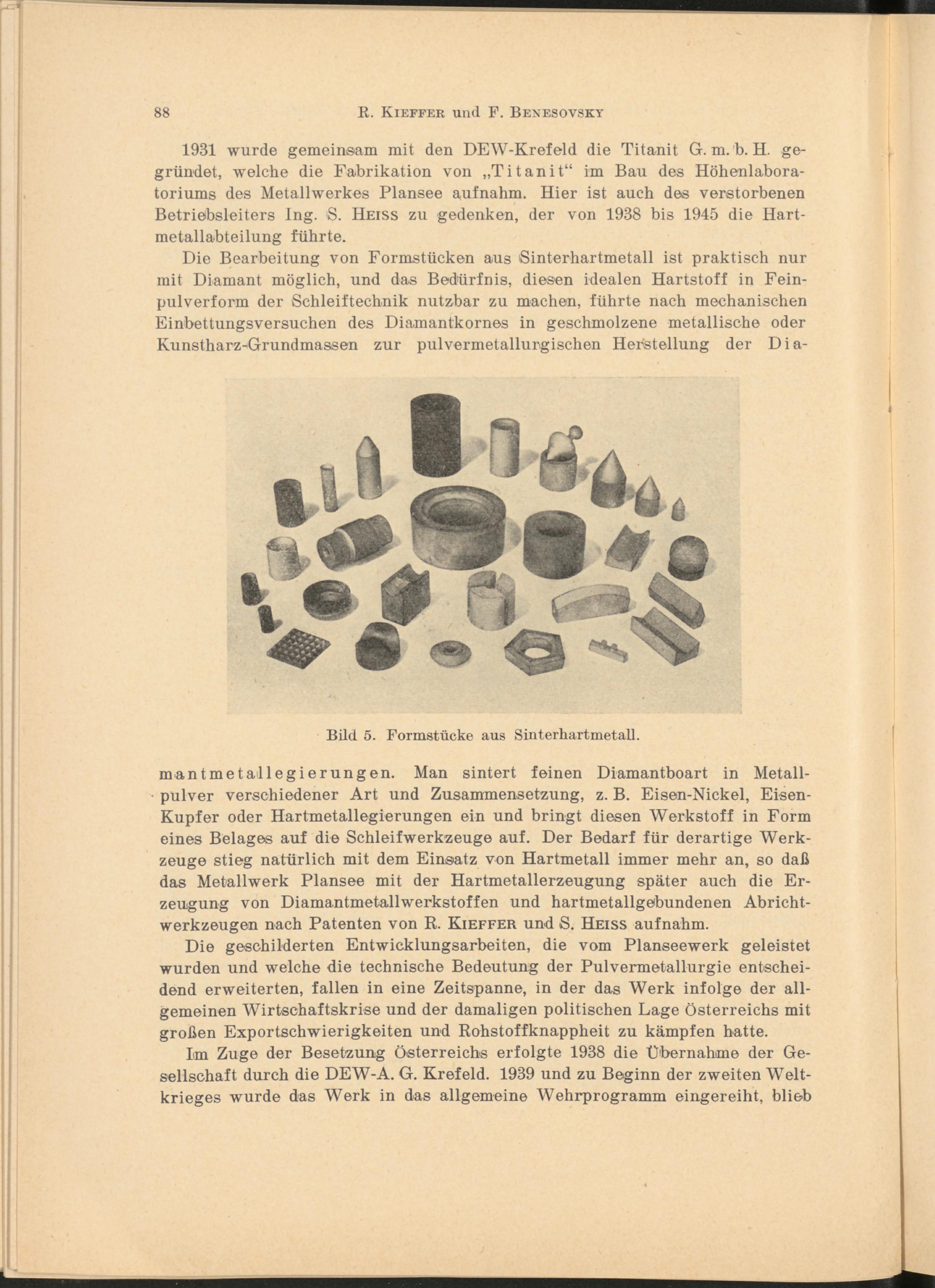 1931 wurde gemeinsam mit den DEW-Krefeld die Titanit G. m. b. H. gegründet, welche die Fabrikation von „Titanit“ im Bau des Höhenlaboratoriums des Metallwerkes Plansee aufnahm. Hier ist auch des verstorbenen Betriebsleiters Ing. S. Heiss zu gedenken, der von 1938 bis 1945 die Hartmetallabteilung führte.