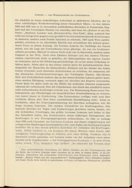 ihn zunächst zu einem mehrjährigen Aufenthalt in südlicheren Ländern, der zu einer vollständigen Wiederherstellung seiner Gesundheit führte. In den Jahren 1884 und 1885 war er in verwandten ausländischen Betrieben in Frankreich, England und den Vereinigten Staaten von Amerika, und zwar bei „Kellner et ses fils, Baris“, „Mulliuer, London“ und „Brewster & Co., New York“, tätig, wodurch'ihm nicht nur Gelegenheit gegeben war, geschäftliche und arbeitstechnische Erfahrungen zu sammeln, sondern auch fremde Sprachen zu erlernen. 1887 nach Wien zurückgekehrt, arbeitete er im väterlichen Betrieb und unterstützte den leidend gewordenen Vater in dessen Leitung. Als Ludwig Löhner die Nachfolge des Vaters antrat, war die Dige des Unternehmens keine günstige. Es war ein Großunternehmen geworden, führend in seinem Fach nicht nur in Österreich, sondern neben England in der Welt. Nach allen Ländern Europas und den meisten Überseestaaten exportierend, hatte es geholfen, die Zahlungsbilanz des eigenen Landes zu verbessern und so die Förderung gerechtfertigt, die es bei seiner Gründung erfahren hatte. Schon aber in den letzten Jahren hatte die protektionistische Handelspolitik der Monarchie die Balkanländer, Rußland und die Länder des Nahen Ostens veranlaßt, auch ihrerseits Zollschranken zu errichten, die zusammen mit den drastischen Einfuhrbeschränkungen der Vereinigten Staaten (MacKinley Bill) und Niederländisch Indiens, das zu den besten Kunden Löhners gehört hatte, einen starken Rückgang, vereinzelt sogar ein Abreißen des Exports verursachte. Dieser hatte bis dahin mehr als die Hälfte des laufenden Absatzes ausgemacht, während der verbleibende Teil, der Inlandabsatz, nun durch den allmählich immer mehr auftauchenden Kraftwagen bedroht war. Die Bestimmung dieses neuen Verkehrsmittels, den Pferdewagen als hauptsächliches Straßenfahrzeug zu ersetzen, irat immer klarer in Erscheinung. Das Unternehmen verfügte wohl noch über reichliche Mittel, aber über keine ausreichende Beschäftigung mehr. Diese zu beschaffen, ohne die Ursprungsbestimmung des Betriebes aufzugeben, war die Sorge Ludwig Löhners. Die raschen Fortschritte im Kraftwagenbau, dem laufende Berichte der Tages- und Fachzeitungen gewidmet waren, fanden, wie alle technischen Neuerungen, das größte Interesse Löhners und ließen in ihm den Entschluß reifen, den Konkurrenten seines bisherigen Erzeugnisses, den Kraftwagen in sein Erzeugungsprogramm aufzunehmen. So fuhr er anfangs Juni 1896 nach Cannstatt, um Gottlieb Daimler und dessen vielgepriesenen und erfolgreichen Kraftwagen kennenzulernen. Die erste Fahrt mit Gottlieb Daimler bestärkte ihn in dem einmal gefaßten Entschluß der Aufnahme des Kraftwagenbaues. Sofort trachtete er, von Daimler für dessen Motoren einen Lizenz- oder wenigstens Vertretungsvertag zu erhalten, aber ohne Erfolg. Daimler war in Österreich bereits gebunden und Löhner wollte von der Aufnahme eines seiner Familie nicht Angehörenden — des Vertragspartners Daimlers — in seine Firma nichts wissen. Paul Siebertz 1 sagt darüber: „So scheiterte der Versuch einer