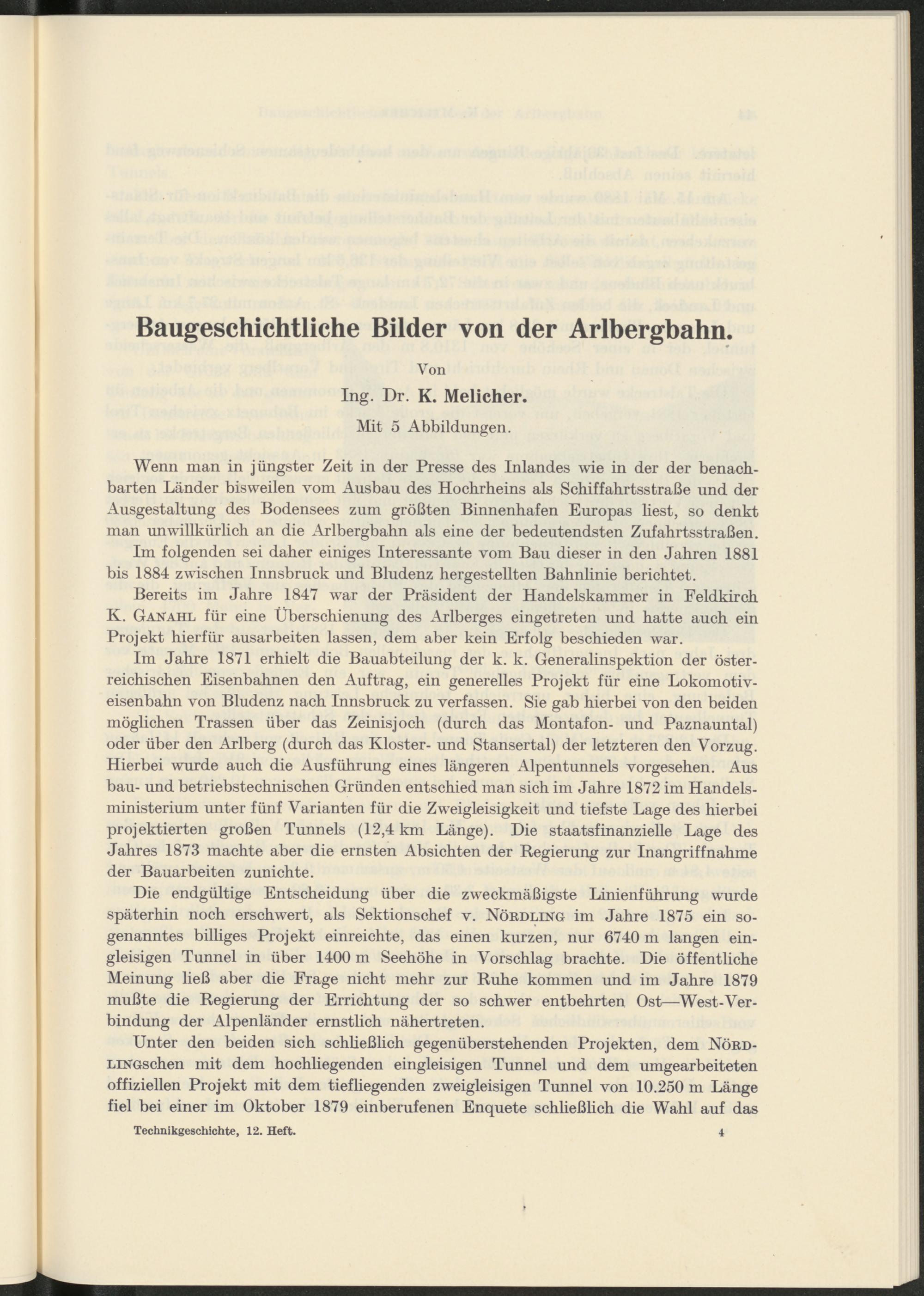 Bereits im Jahre 1847 war der Präsident der Handelskammer in Feldkirch K. Gana.hl für eine Überschienung des Arlberges eingetreten und hatte auch ein Projekt hierfür ausarbeiten lassen, dem aber kein Erfolg beschieden war.
