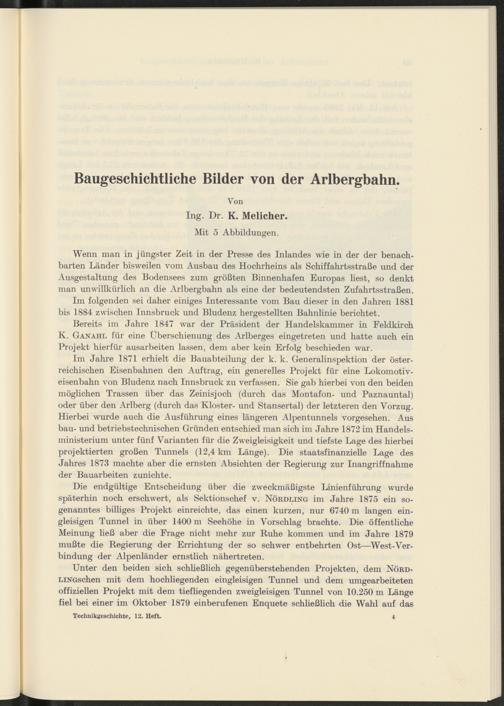 Im folgenden sei daher einiges Interessante vom Bau dieser in den Jahren 1881 bis 1884 zwischen Innsbruck und Bludenz hergestellten Bahnlinie berichtet.
