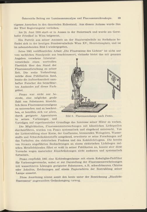 lh sko war nicht nur bestrebt, eine möglichst große Zahl von Substanzen hinsichtlich ihres Fluoreszenzvermögens zu untersuchen und zu beschreiben, er bemühte sich vor allem, durch geeignete Apparaturen in seinen Vorlesungen und Vorträgen auf experimenteller Grundlage das Interesse seiner Hörer zu wecken.