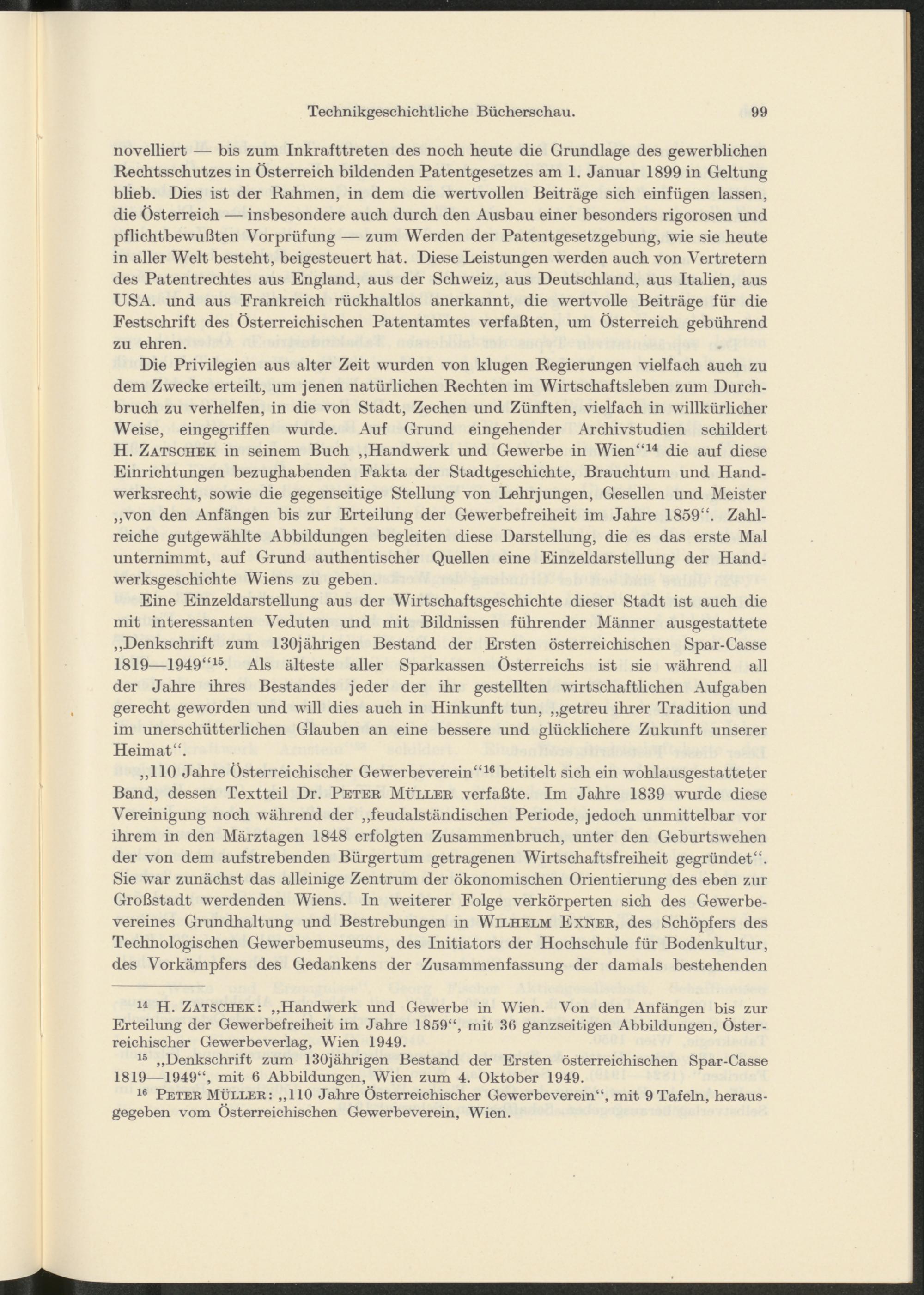 14 H. Zatschek: „Handwerk und Gewerbe in Wien. Von den Anfängen bis zur Erteilung der Gewerbefreiheit im Jahre 1859“, mit 36 ganzseitigen Abbildungen, Österreichischer Gewerbeverlag, Wien 1949.