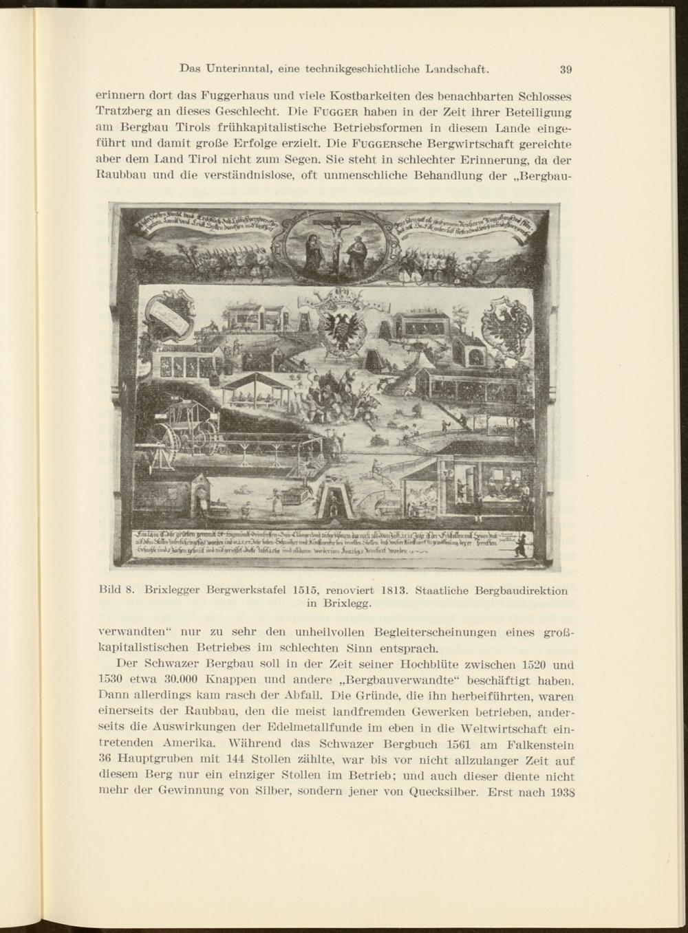 erinnern dort das Fuggerhans and viele Kostbarkeiten des benachbarten Schlosses Tratzberg an dieses Geschlecht. Die Fugger haben in der Zeit ihrer Beteiligung am Bergban Tirols frühkapitalistische Betriebsformen in diesem Lande eingeführt nnd damit große Erfolge erzielt. Die FuGGERSche Bergwirtschaft gereichte aber dem Land Tirol nicht zum Segen. Sie steht in schlechter Erinnerung, da der Kaubban und die verständnislose, oft unmenschliche Behandlung der „Bergbau-
