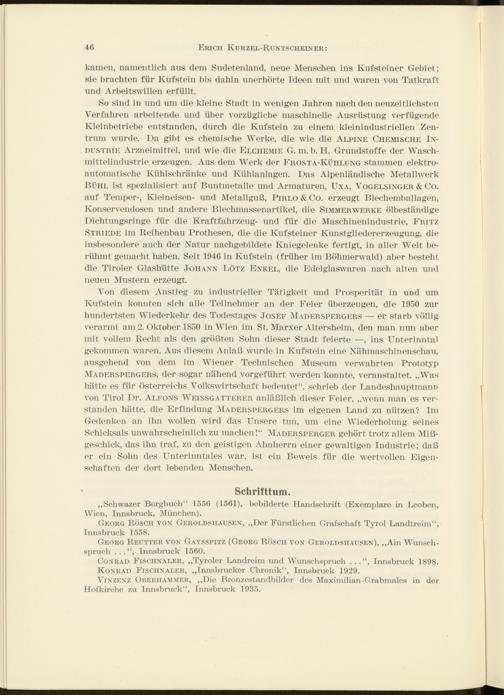 kamen, namentlich aus dem Sudetenland, neue Menschen ins KufSteiner Gebiet; sie brachten für Kufstein bis dahin unerhörte Ideen mit und waren von Tatkraft und Arbeitswillen erfüllt.