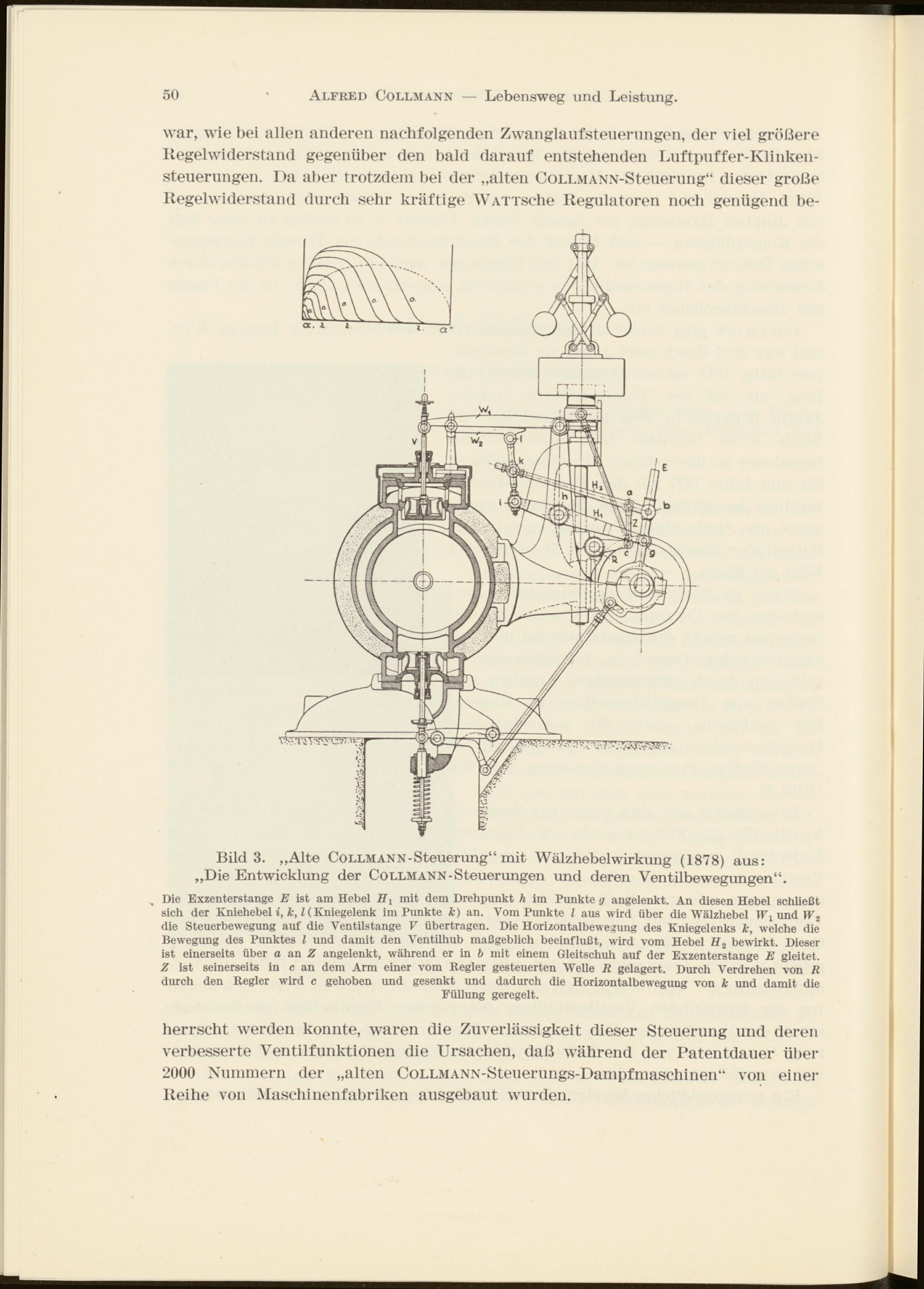 Bild 3. „Alte Collmann- Steuerung“ mit Wälzhebel Wirkung (1878) aus: