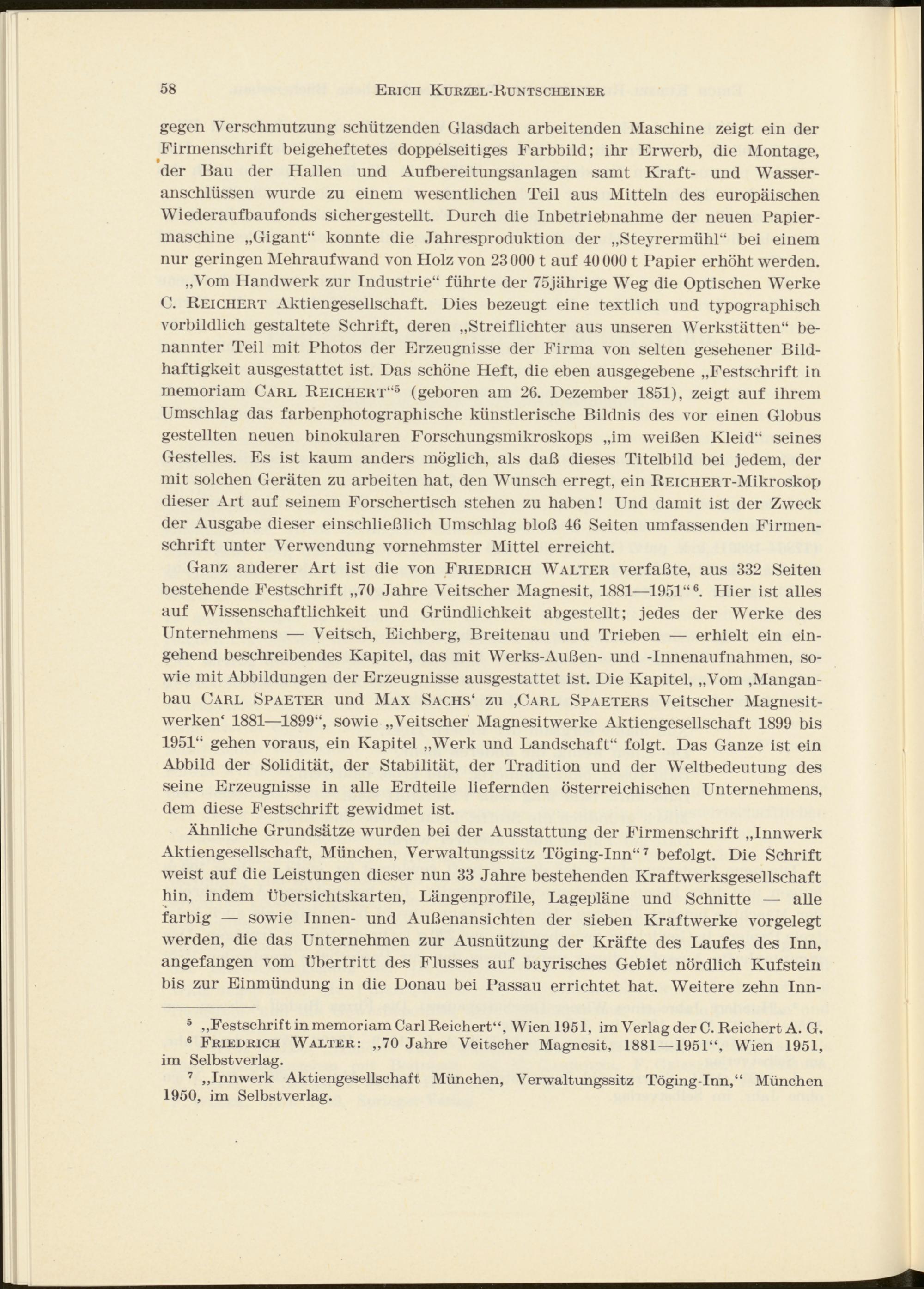 6 Friedrich Walter: „70 Jahre Veitscher Magnesit, 1881 — 1951“, Wien 1951, im Selbstverlag.