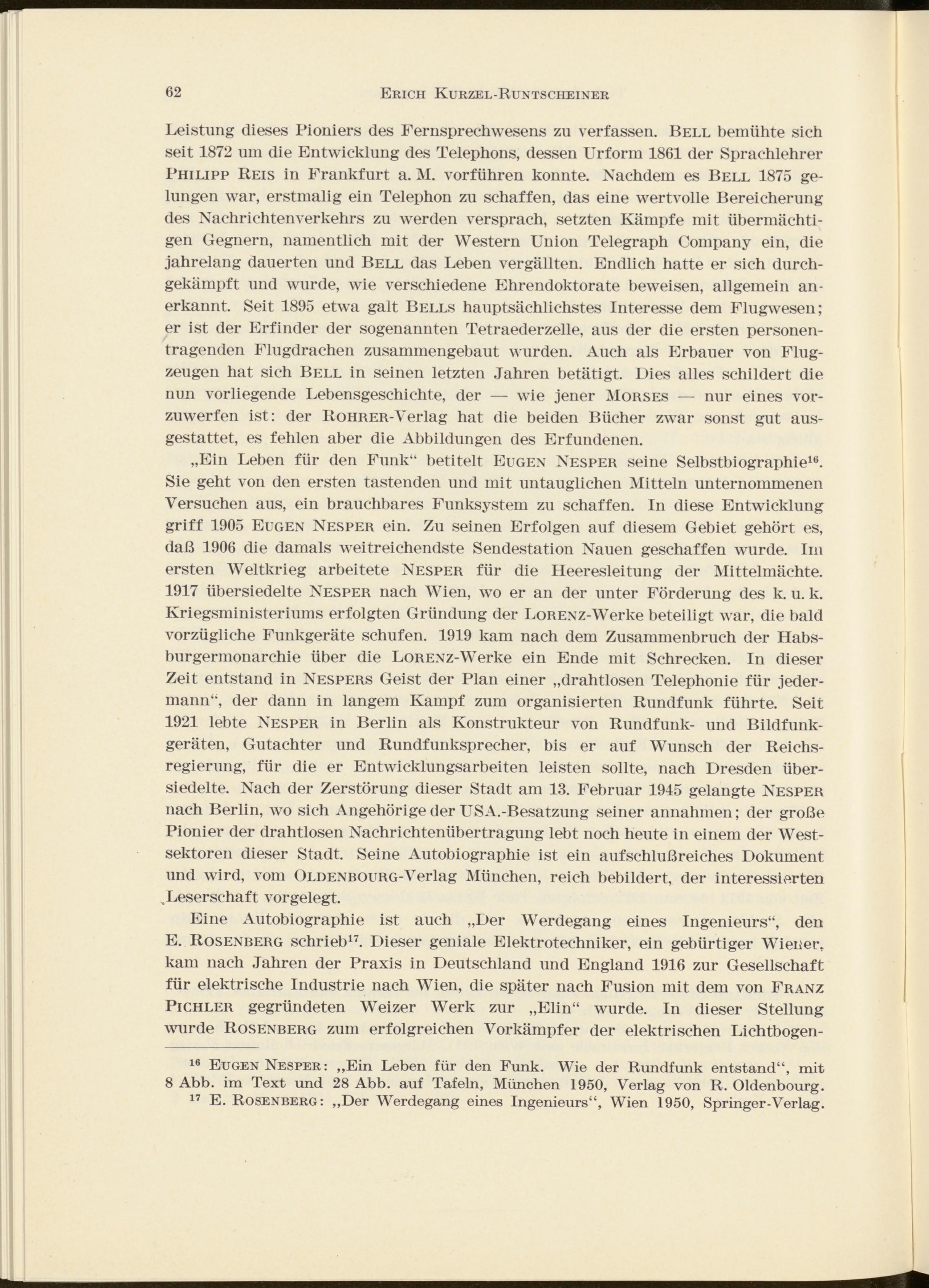 17 E. Rosenberg: „Der Werdegang eines Ingenieurs“, Wien 1950, Springer-Verlag.