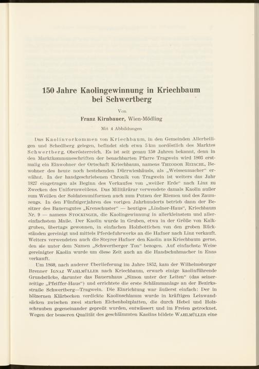 150 Jahre Kaolingewinnung in Kriechbaum bei Schwertberg