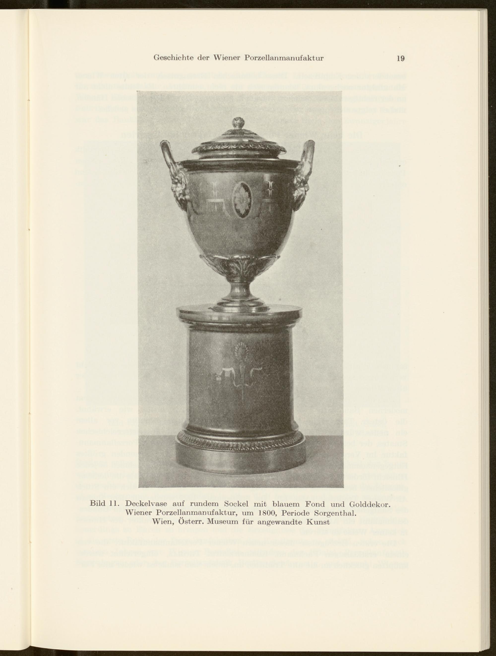 Bild 11. Deckelvase auf rundem Sockel mit blauem Fond und Golddekor. Wiener Porzellanmanufaktur, um 1800, Periode Sorgenthal.