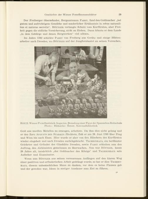 Bild 22. Wiener Porzellanfabrik Angai ten. Bemalung einer Figur der Spanischen Reitschule Photo: Bildarchiv Österr. Nationalbibliothek