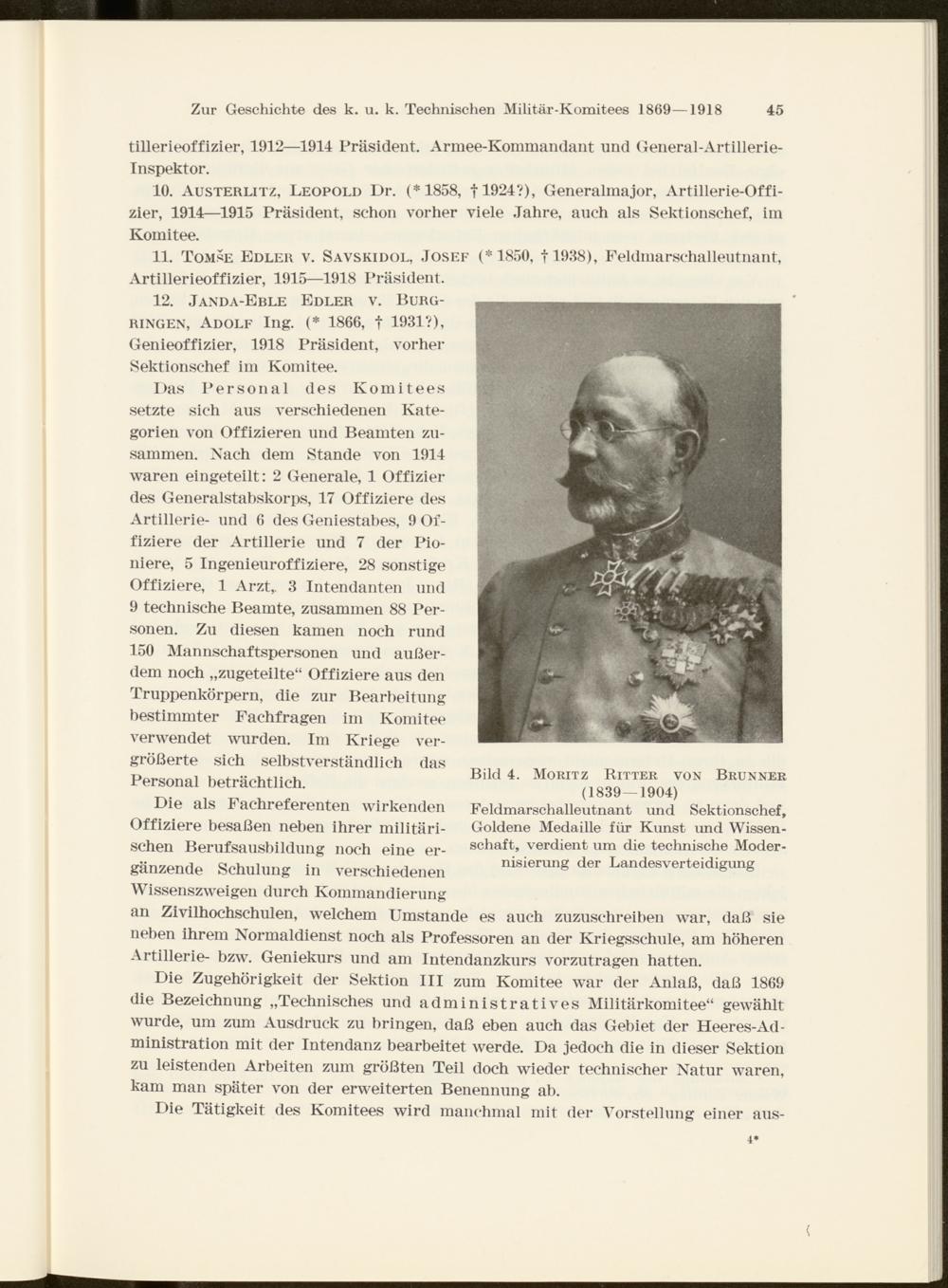 10. Austerlitz, Leopold Dr. (*1858, fl924?), Generalmajor, Artillerie-Offizier, 1914—1915 Präsident, schon vorher viele Jahre, auch als Sektionschef, im Komitee.