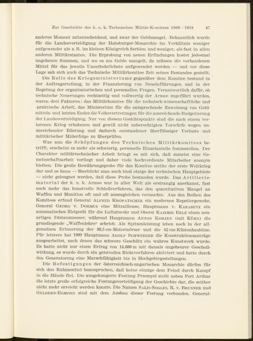 anderes Moment mitentscheidend, und zwar der Geldmangel. Bekanntlich wurde für die Landesverteidigung der Habsburger-Monarchie im Verhältnis weniger aufgewendet als z. B. im kleinen Königreich Serbien und weniger, als fast in allen anderen Militärstaaten. Die Erprobung von neuen Erfindungen kostet jedesmal ungeheure Summen, und w t o es am Gelde mangelt, da müssen die vorhandenen Mittel für das jeweils Unentbehrlichste auf gewendet werden — und vor diese Lage sah sich auch das Technische Militärkomitee Zeit seines Bestandes gestellt.