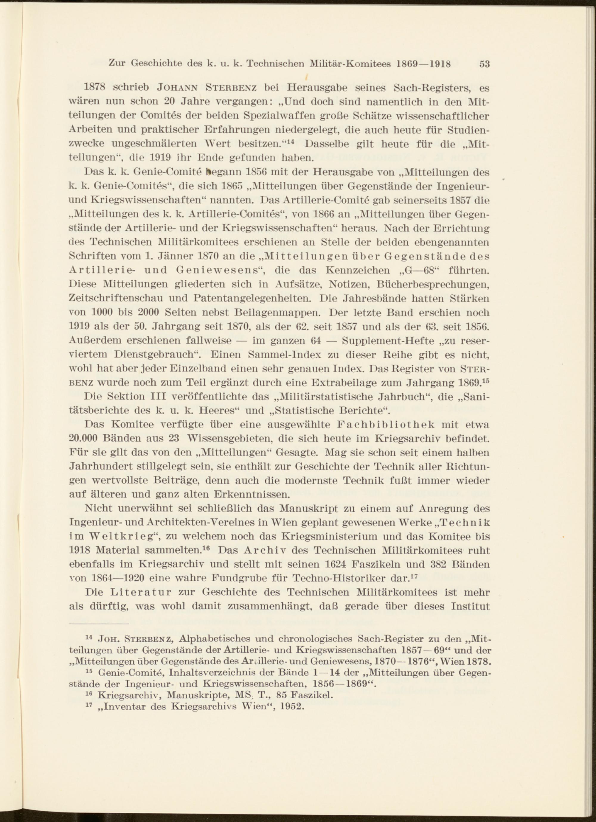 14 Joh. Sterbenz, Alphabetisches und chronologisches Sach-Register zu den „Mitteilungen über Gegenstände der Artillerie- und Kriegswissenschaften 1857—69“ und der „Mitteilungen über Gegenstände des Artillerie- und Geniewesens, 1870—1876“, Wien 1878.