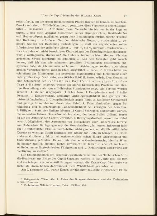 Die Stellungnahmen des Reichskriegsministeriums und des Technischen Militär-Komitees 5 zur Frage der Captif-Schraube reichen in die Jahre 1891 bis 1898 und sie bringen wertvolle Aufklärungen, weshalb die KRESS-Captif-Schraube vor mehr als einem halben Jahrhundert nicht Wirklichkeit geworden ist.