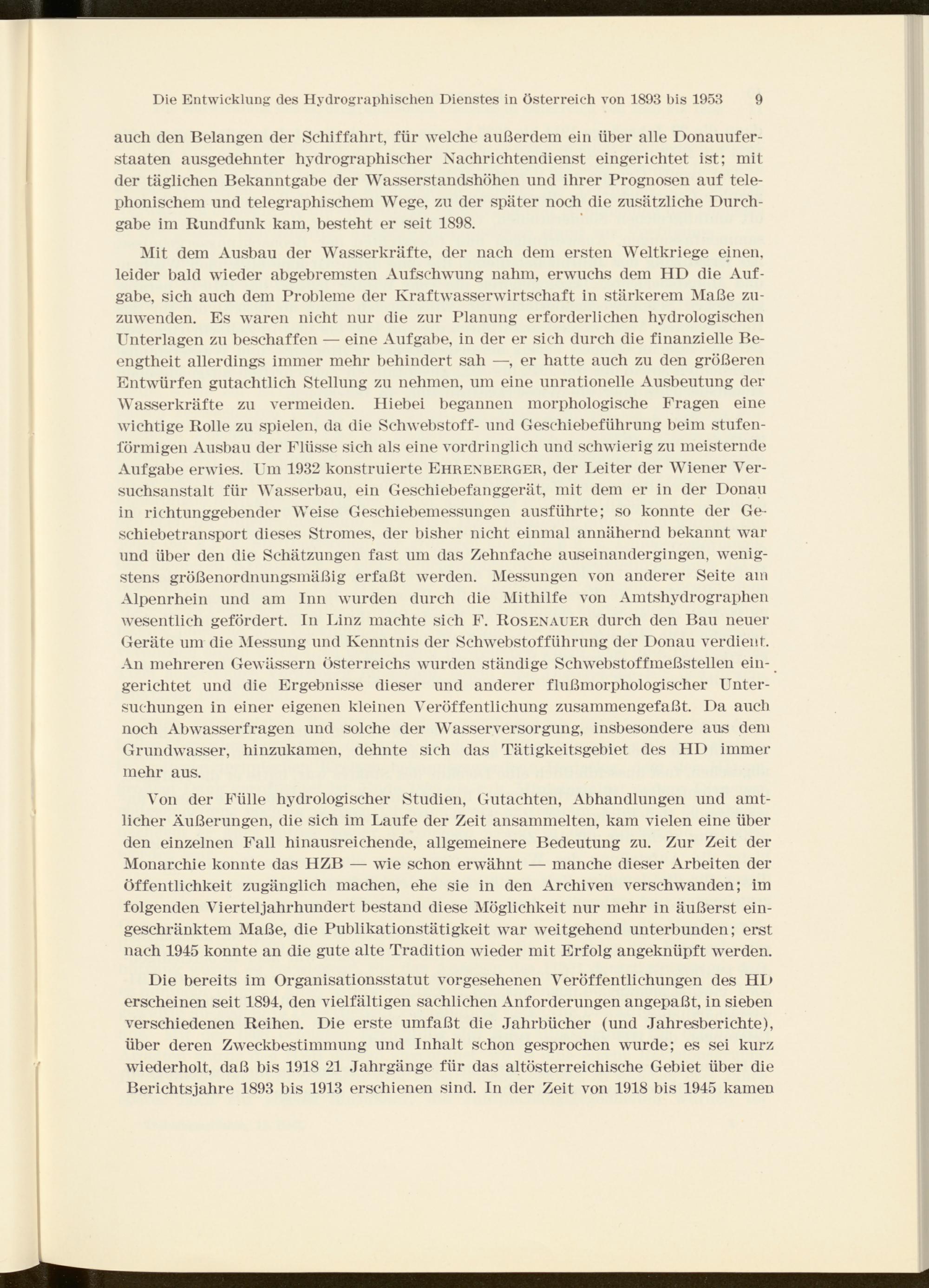 Die Entwicklung des Hydrographischen Dienstes in Österreich von 1893 bis 1953