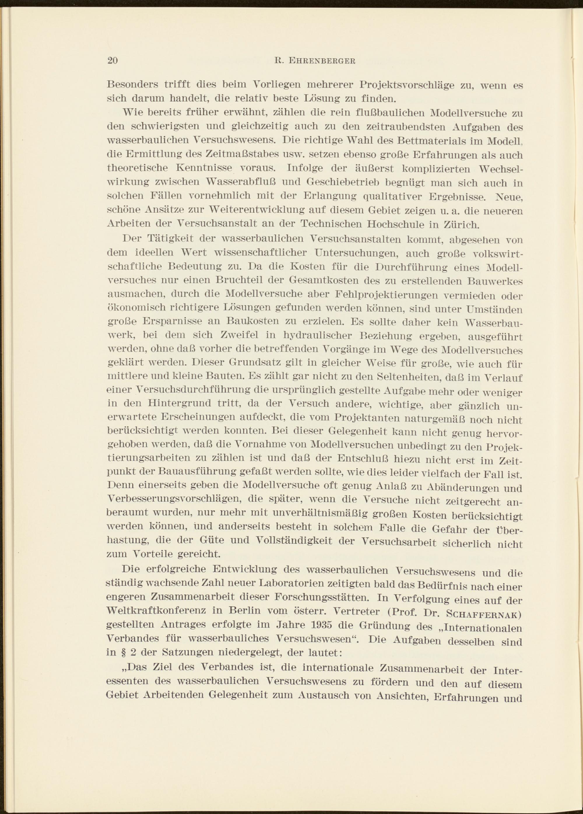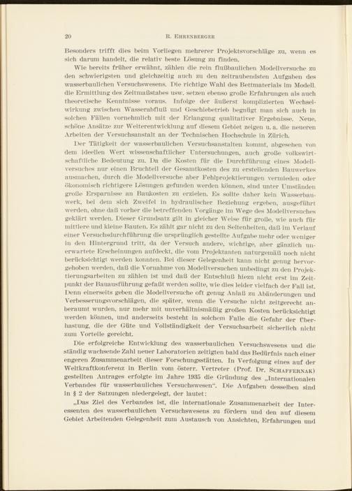 Die erfolgreiche Entwicklung des wasserbaulichen Versuchswesens und die ständig wachsende Zahl neuer Laboratorien zeitigten bald das Bedürfnis nach einer engeren Zusammenarbeit dieser Forschungsstätten. In Verfolgung eines auf der Weltkraftkonferenz in Berlin vom österr. Vertreter (Prof. Dr. Schaffernak) gestellten Antrages erfolgte im Jahre 1935 die Gründung des „Internationalen Verbandes für wasserbauliches Versuchswesen“. Die Aufgaben desselben sind in § 2 der Satzungen niedergelegt, der lautet: