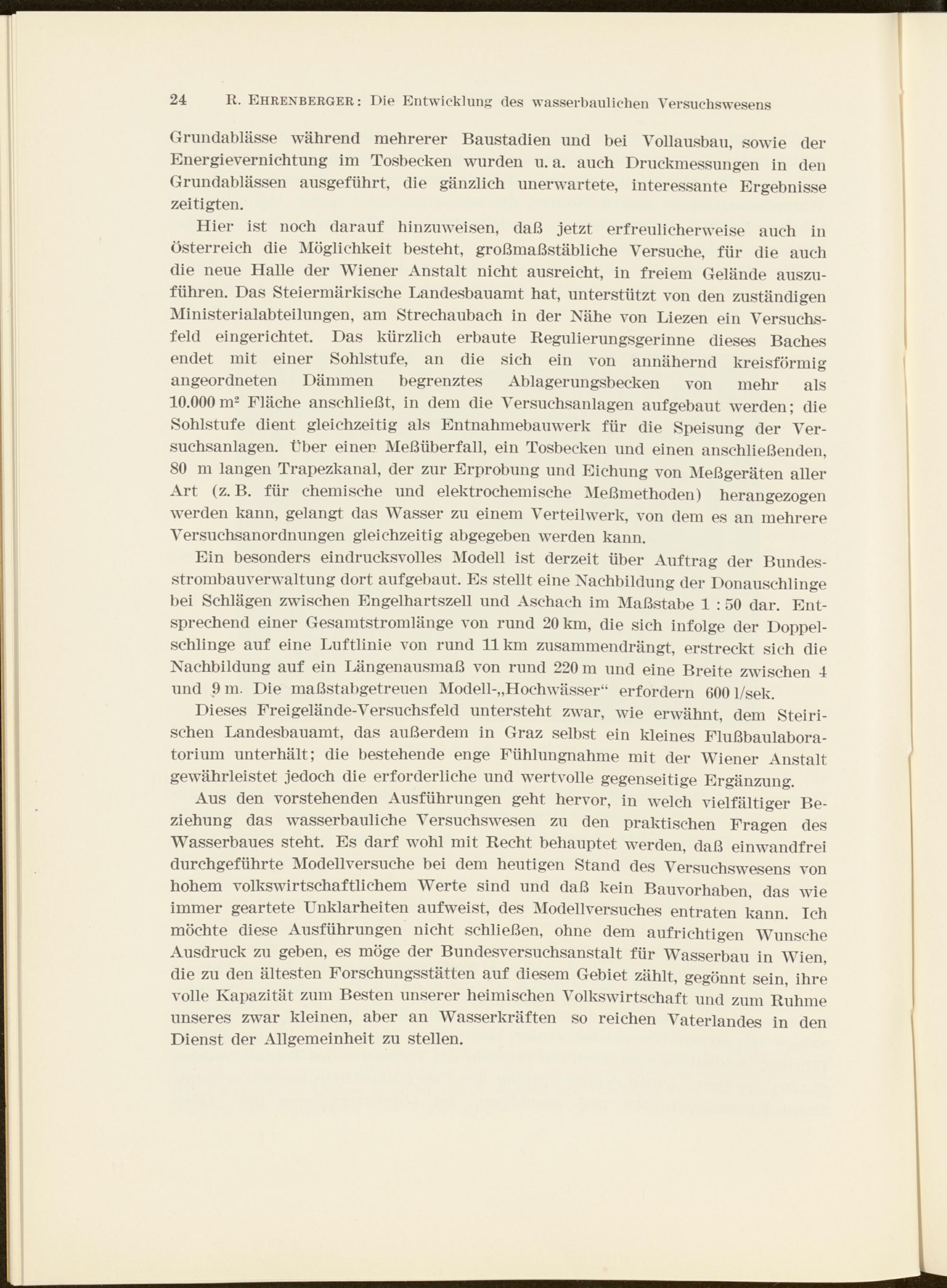24 R. Ehrenberger : Die Entwicklung des wasserbaulichen Versuchswesens