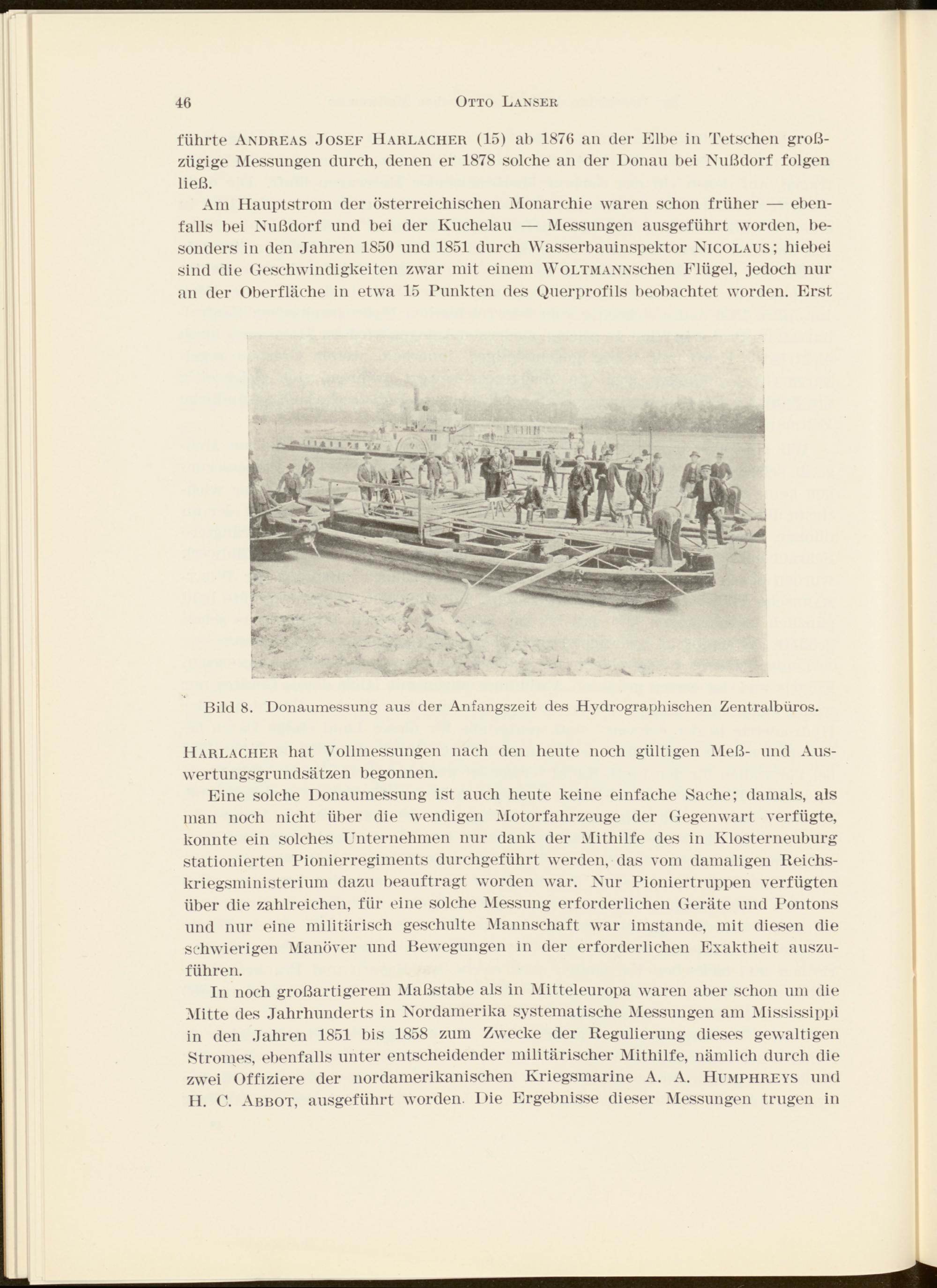 In noch großartigerem Maßstabe als in Mitteleuropa waren aber schon um die Mitte des Jahrhunderts in Nordamerika systematische Messungen am Mississippi in den Jahren 1851 bis 1858 zum Zwecke der Regulierung dieses gewaltigen Stromes, ebenfalls unter entscheidender militärischer Mithilfe, nämlich durch die zwei Offiziere der nordamerikanischen Kriegsmarine A. A. Humphreys und H. G. Abrot, ausgeführt worden. Die Ergebnisse dieser Messungen trugen in