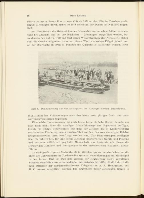 führte Andreas Josef Harlaciier (15) ab 1876 an der Elbe in Tetschen großzügige Messungen durch, denen er 1878 solche an der Donau bei Nußdorf folgen ließ.